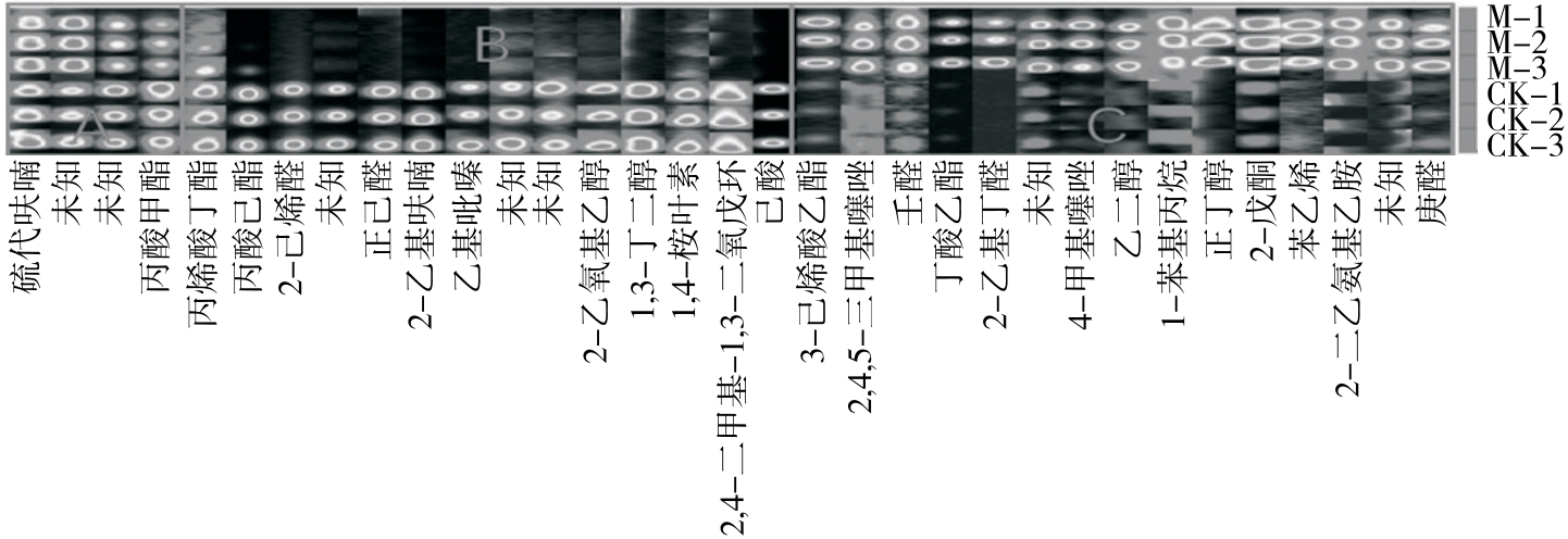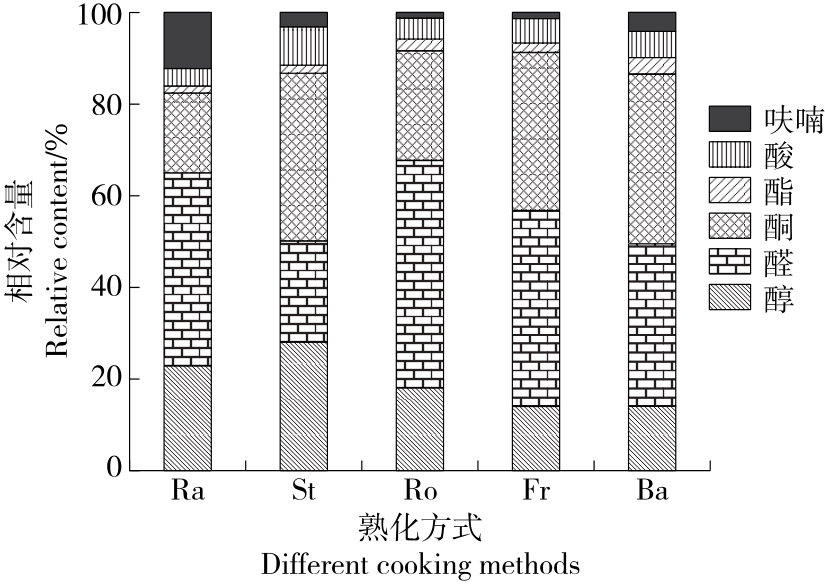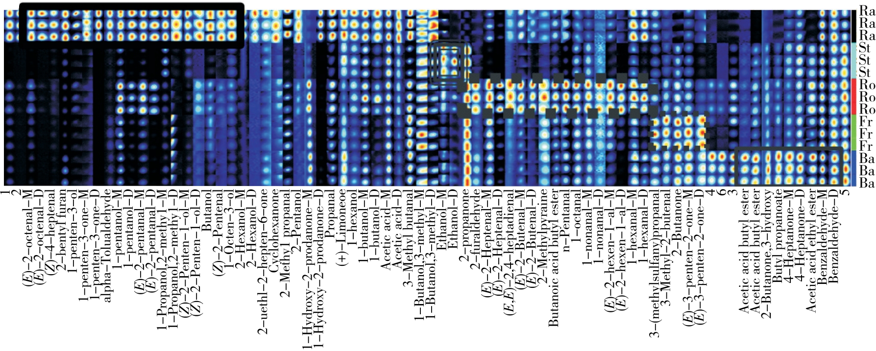 摘要:目的 探明熟化方式对国家地理标志农产品——胡陈马铃薯特征挥发性物质差异的影响。方法 以胡陈马铃薯为研究对象,利用气相色谱—离子迁移谱(GC-IMS)结合指纹图谱分析技术,探究4种熟化方式对其挥发性风味物质的影响。结果 胡陈马铃薯挥发性风味物质以醇、醛、酮为主,4种熟化方式对其特征挥发性风味成分产生显著差异。醇物质含量:蒸制>煎制>烤制>炸制,醛物质含量:煎制>炸制>烤制>蒸制,酮物质含量:烤制>蒸制>炸制>煎制。指纹图谱分析显示,相比其余3种熟化方式,煎制可显著提高胡陈马铃薯的果香味。结论 GC-IMS结合指纹图谱技术可实现不同熟化方式土豆挥发性风味成分差异的有效鉴别。