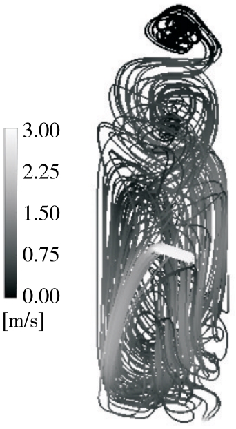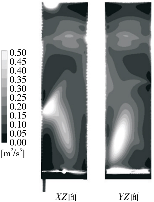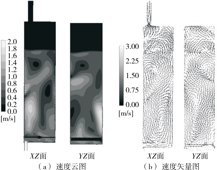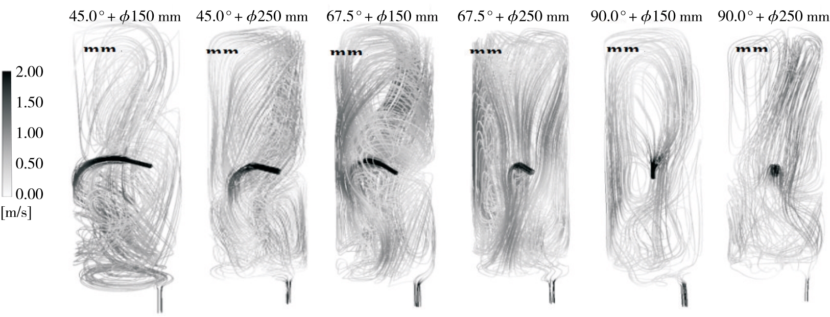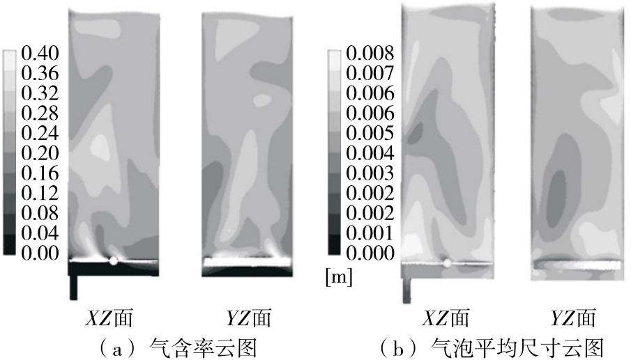 摘要:目的 对80 t鼓泡式生物反应器进行流场模拟分析,改进设备,提升发酵效率。方法 利用计算流体力学对鼓泡式生物反应器内的气液两相流进行数值模拟。采用欧拉—欧拉法和k-ε模型模拟气液两相湍流,并耦合群平衡模型(PBM)预测气泡尺寸,模拟反应器内流型、液速、能量耗散率、气含率和气泡大小分布的情况,根据渗透模型计算反应器内的体积氧传质系数(kLa),分析回流管中的回流角度和直径对反应器供氧能力的影响。结果 回流管对反应器流场影响显著,液速、能量耗散率、气泡大小等受到了回流管正向影响,反应器体积氧传质系数为1 093 h-1。回流管回流角度和回流管直径有交互作用,最优组合为直径150 mm,角度45°,此时体积氧传质系数为1 428 h-1。结论 回流管装置起到了关键作用,能使鼓泡反应器在供氧能力上不低于同规模搅拌反应器。