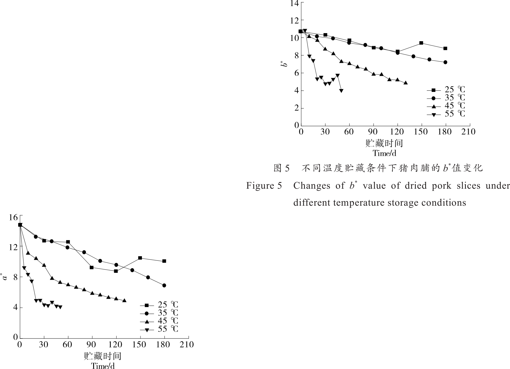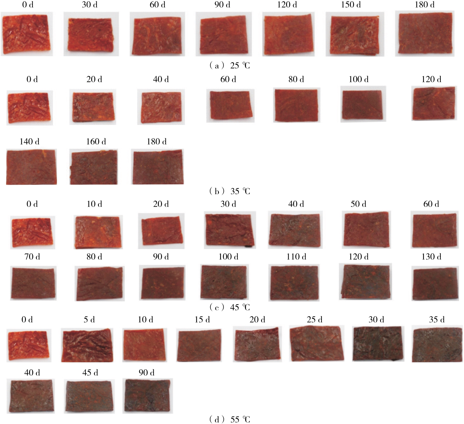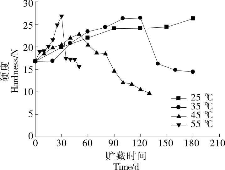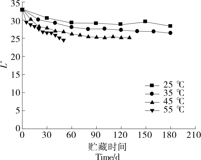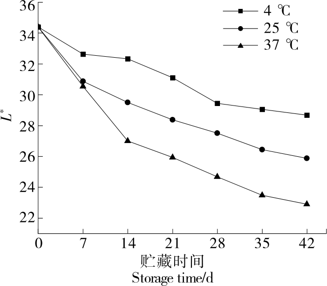 摘要:目的 探究猪肉脯在不同温度贮藏条件下的品质变化规律,预测猪肉脯的货架期。方法 研究猪肉脯在不同温度(25,35,45,55 ℃)贮藏条件下的硬度、色泽(L*值、a*值、b*值)和感官品质的变化情况,并对各个指标进行Pearson相关性分析,采用动力学模型拟合关键指标,结合阿伦尼乌斯(Arrhenius)方程和Q10模型建立货架期预测模型。结果 在25,35,45,55 ℃贮藏条件下猪肉脯的a*值分别从14.79±0.08降低到9.99±0.10,6.88±0.15,4.90±0.25,4.11±0.06。通过Pearson相关性分析,选择a*值作为关键因子建立Arrhenius预测模型,所得的一级动力学方程为