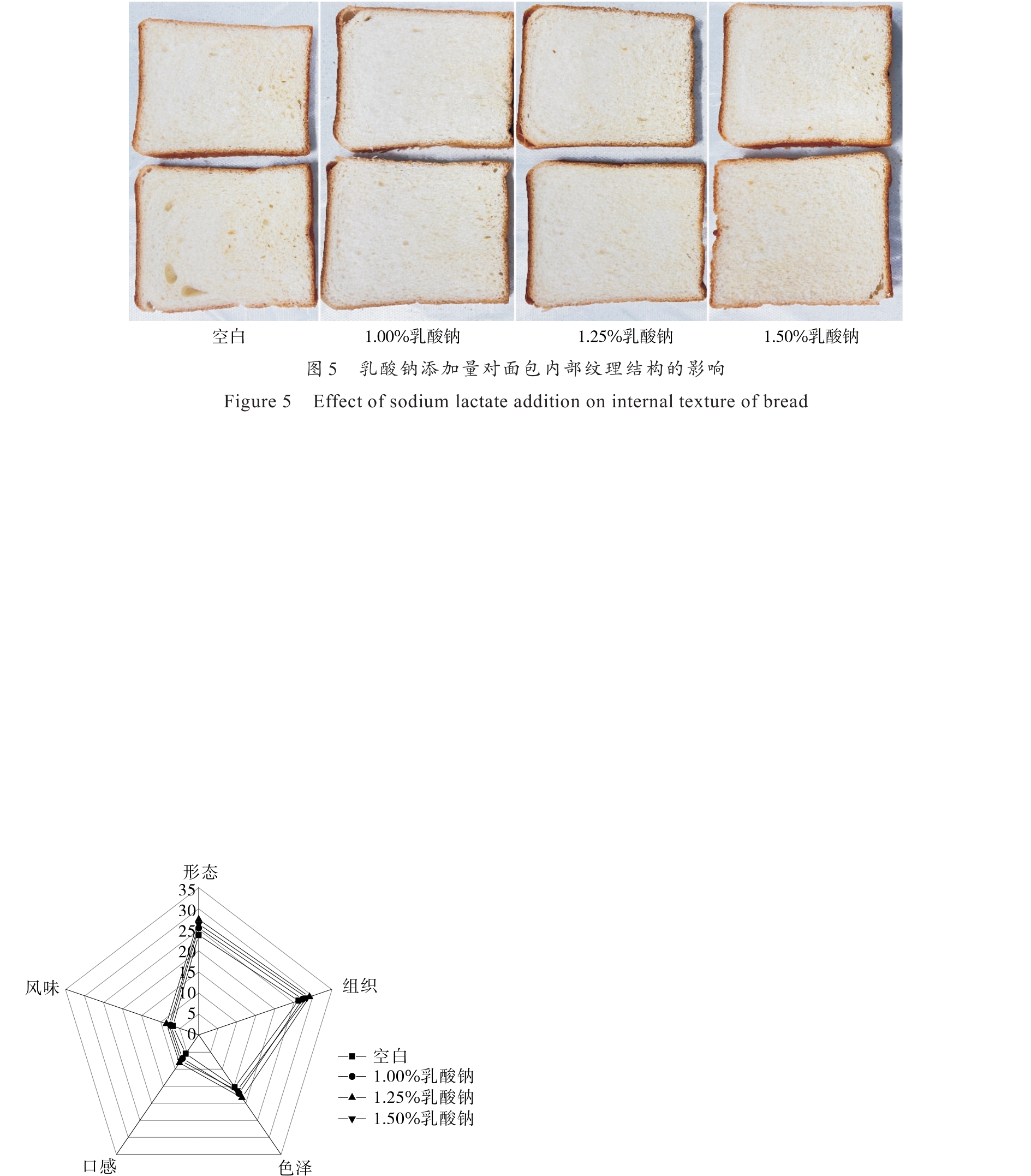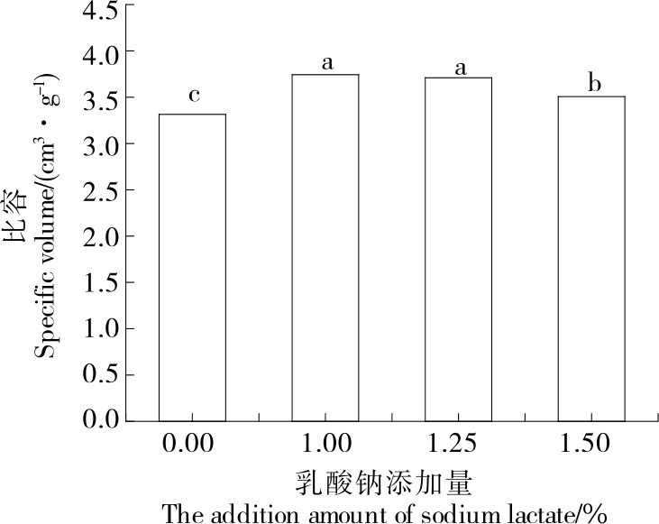 摘要:目的 研究乳酸钠对面包品质特性的影响。方法 在面包生产过程中添加一定比例的乳酸钠(1.00%,1.25%,1.50%),考察乳酸钠添加量对面包质构、低场核磁、水分活度、比容和保质期的影响,并进行风味感官评定。结果 面包质构指标硬度、咀嚼性和胶黏性均随着乳酸钠添加量的增加呈先上升后下降趋势;当乳酸钠添加量为1.25%时,面包硬度最低且弹性最高;面包的持水能力和比容有显著提升。添加1.25%乳酸钠后,面包内部结构更加细腻紧凑,感官评价各指标分数均最高。添加乳酸钠面包保质期由3 d延长到5 d。结论 面包中添加乳酸钠能够改善面包品质,延长保质期。
