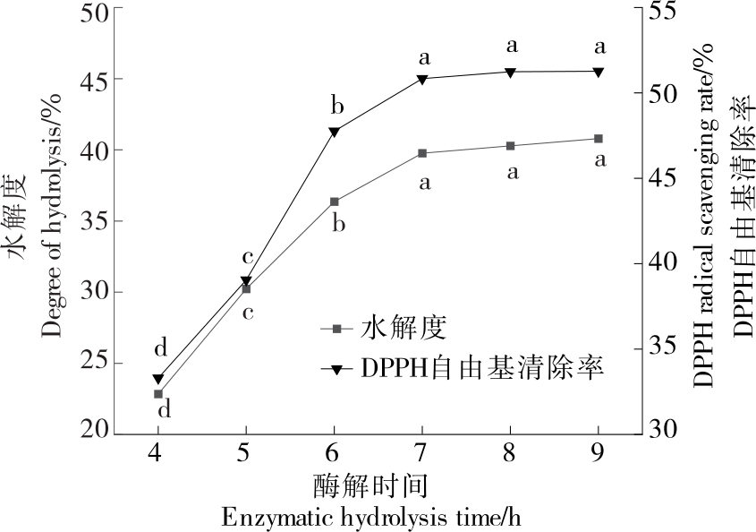 摘要:目的 以牡蛎为原料,采用复合蛋白酶(木瓜蛋白酶、碱性蛋白酶、氨基肽酶)水解制备具有抗氧化活性的牡蛎肽,并评价其抗运动疲劳活性。方法 以水解度和DPPH自由基清除率为考察指标,采用响应面试验优化牡蛎肽制备工艺,并探究牡蛎肽对运动小鼠的疲劳改善作用。结果 牡蛎肽最佳提取工艺为复合蛋白酶添加量4%,酶解pH 7.5,料液比1∶7.5 (g/mL),酶解温度57 ℃,酶解时间7 h,该工艺下牡蛎肽酶解水解度为48.3%,DPPH自由基清除率为60.42%;牡蛎肽中疏水性氨基酸含量为33.18 g/100 g,占氨基酸总量的48.28%,相对分子质量主要集中在5 000以下,低相对分子质量组分(<1 000)占比达71.45%,表明牡蛎肽主要为小分子肽并具有良好的抗氧化能力。小鼠抗运动疲劳试验证明,与空白对照组相比,给予牡蛎肽高剂量干预,小鼠转棒疲劳时间及负重游泳时间分别增加了10.93,13.34 min,运动能力得到显著性提高(P<0.05);同时,牡蛎肽可显著性降低运动后小鼠体内BLA和BUN含量(P<0.05),提高小鼠抗氧化水平,MDA和SOD水平均有显著性改善(P<0.05)。结论 试验制备的牡蛎肽具有较好的抗氧化活性,有助于增强小鼠运动耐力,缓解运动疲劳。