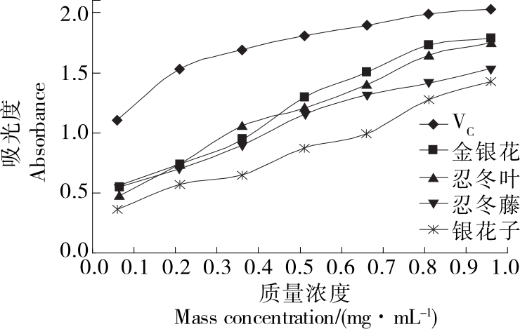 摘要:目的 开发忍冬药食两用资源,提高忍冬多糖得率,确定忍冬不同器官的抗氧化活性,减少天然药物资源浪费。方法 以忍冬不同器官为原料、多糖得率为考察指标,结合响应面法对多糖提取参数进行优化,确定最佳工艺;测定不同器官忍冬提取物的体外抗氧化活性并结合计量学方法进行分析。结果 提取忍冬多糖的最佳工艺为料液比1∶25 (g/mL),超声温度80 ℃,超声时间60 min,超声功率190 W,该条件下多糖得率达7.01%。抗氧化结果显示,忍冬不同器官均具有抗氧化作用,其强弱为忍冬叶≈金银花>忍冬藤>银花子;聚类分析结果显示,忍冬叶和金银花归为一类,可作为忍冬多糖提取的优选资源。结论 超声辅助法提取忍冬多糖得率高且不同器官提取物能保持高效的抗氧化能力。