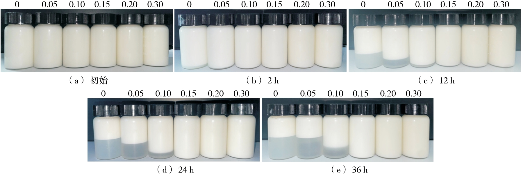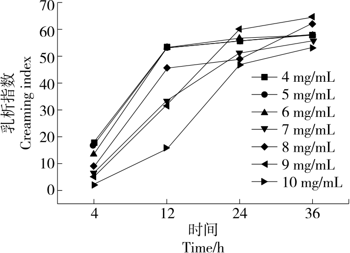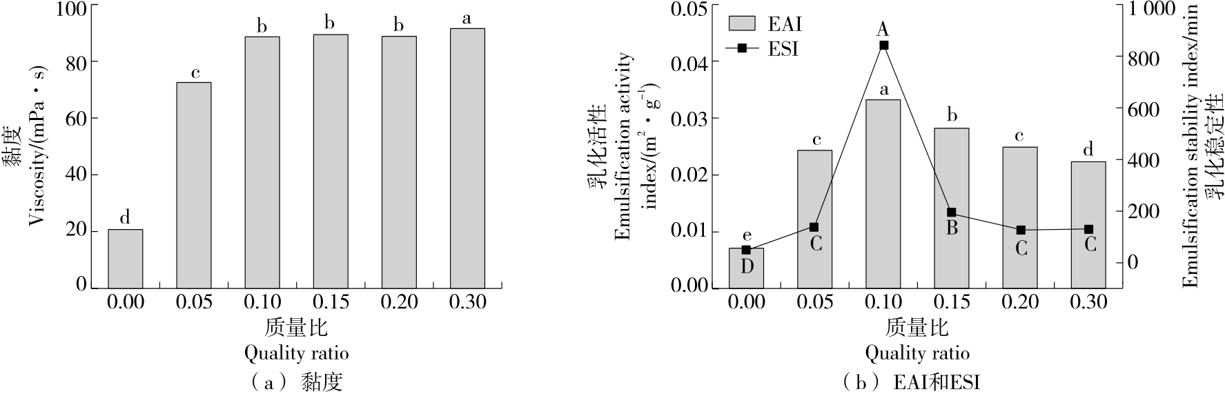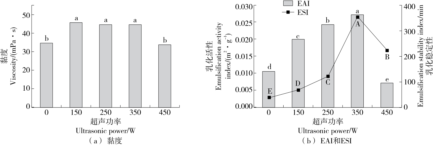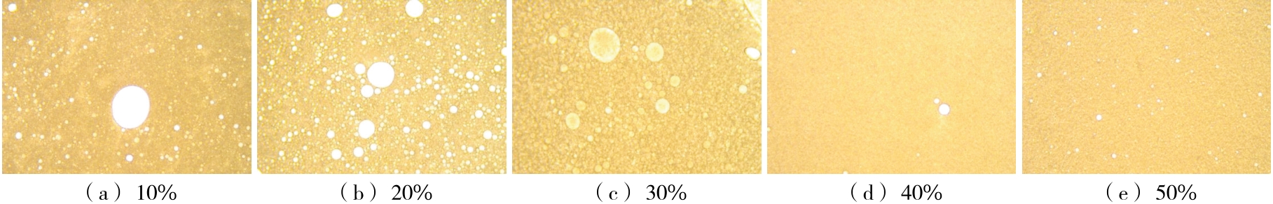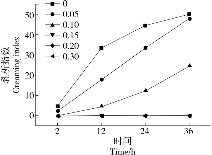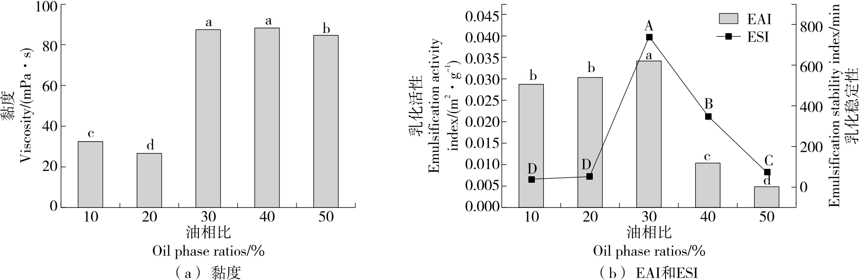 摘要:目的 探究黄原胶—皂角米多糖Pickering乳液超声辅助制备的最佳工艺及稳定性。方法 以皂角米多糖、黄原胶为复合胶体颗粒,玉米油为油相,在黄原胶与皂角米多糖质量比、油相比及超声功率等单因素试验基础上,以乳化活性(EAI)和乳化稳定性(ESI)为指标,通过响应面法优化黄原胶—皂角米多糖Pickering乳液的制备工艺,考察Pickering乳液热稳定性以及盐稳定性。结果 黄原胶—皂角米多糖Pickering乳液的最佳制备工艺:皂角米多糖质量浓度10 mg/mL,黄原胶与皂角米多糖质量比0.05,油相比30%,超声功率350 W,该条件下乳液的乳化活性为(0.056 0±0.000 8) m2/g,乳化稳定性为(575.98±5.45) min;乳液在25~50 ℃及NaCl浓度为0~100 mmol/L的条件下具有良好的乳化稳定性。结论 将黄原胶与皂角米多糖复配,通过超声辅助制备Pickering乳液,改善了乳液的乳化特性,提高了稳定性。