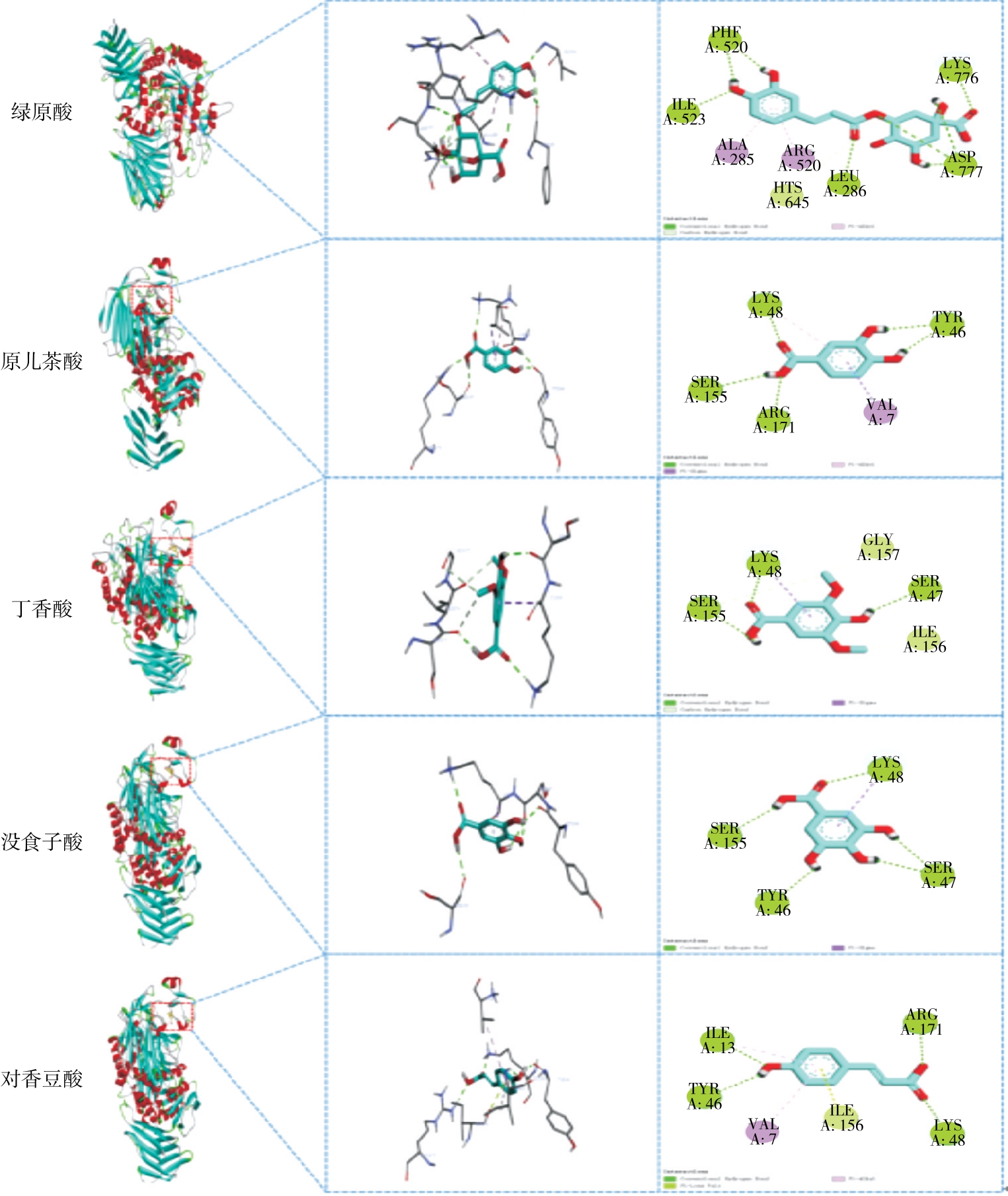 摘要:目的 探究黑大豆副产物——黑豆壳多酚的功能特性及其在面包中的应用。方法 利用超声辅助溶剂法提取黑豆壳多酚粗提物,从中分离出了游离多酚和结合多酚,并分析其对面包淀粉消化特性的调控作用。结果 从黑豆壳多酚中得到的游离态和结合态多酚含量分别为20.42,9.47 mg GAE/g,其中游离多酚对ABTS自由基、DPPH自由基清除率分别达88.85%,80.04%。添加0.25%多酚可使面包芯、皮的快消化淀粉含量从43.75%和40.23%降至31.25%和27.93%,抗性淀粉升至45.32%和50.59%。分子对接显示,黑豆壳多酚中绿原酸等成分与α-葡萄糖苷酶通过氢键与疏水作用实现竞争性—非竞争性的混合抑制。结论 黑豆壳多酚可通过抑制α-葡萄糖苷酶活性及改变淀粉结构双重路径延缓面包消化。