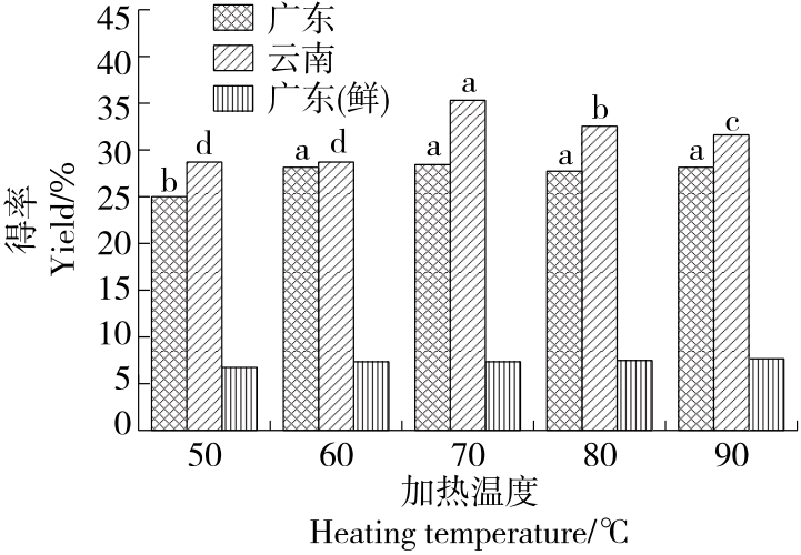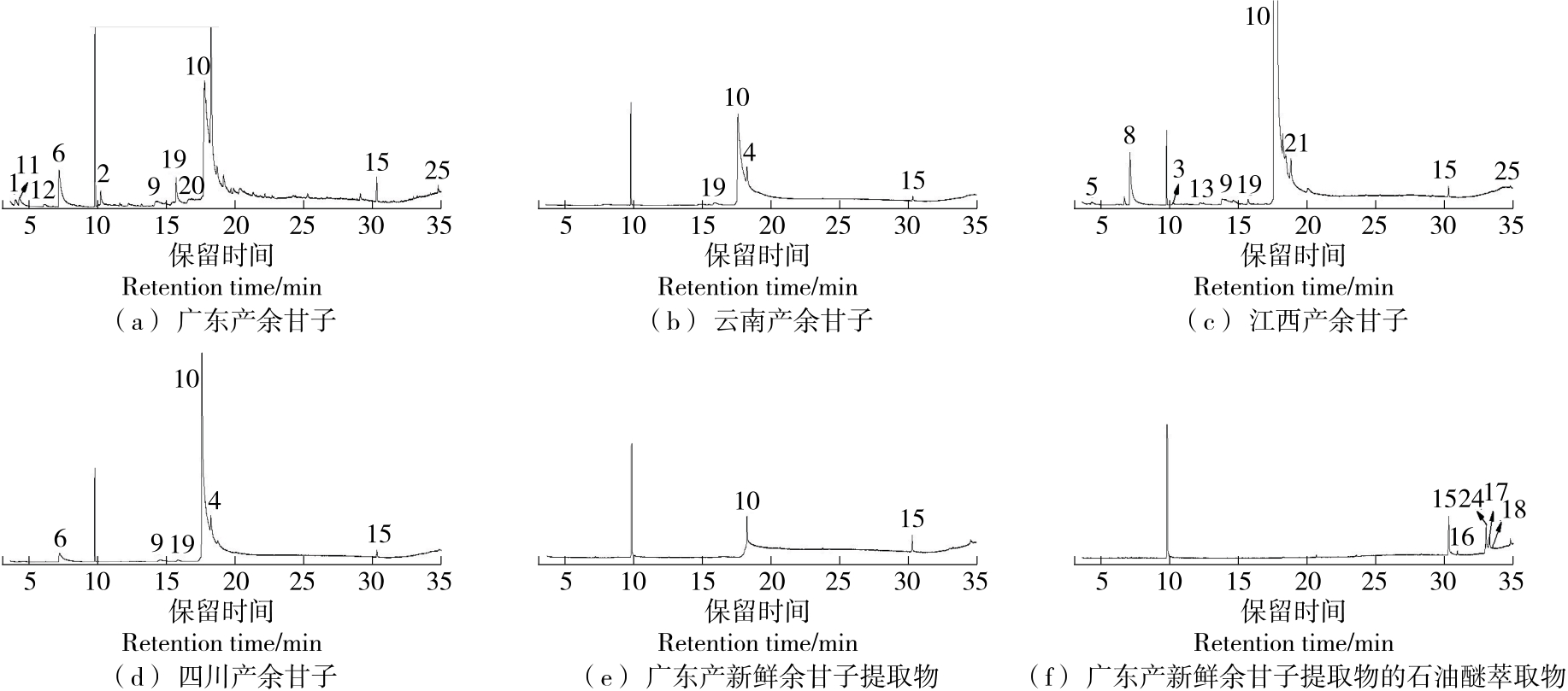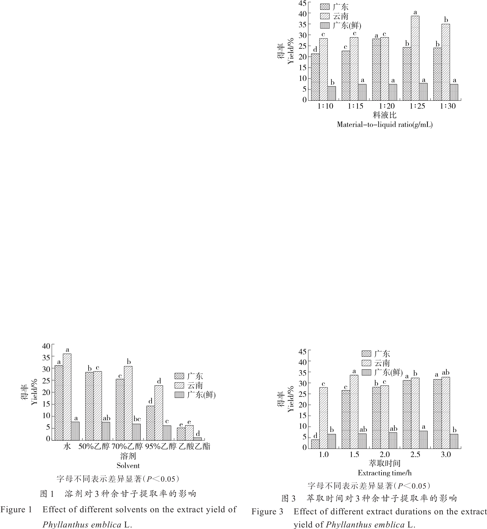 摘要:目的 研究不同产地余甘子提取率影响因素、特征香味成分以及余甘子提取物稳定性。方法 以广东、云南、江西和四川4个产地的5种余甘子作为原料,采用正交试验考察不同因素对余甘子提取率的影响,通过气质分析以及相似度计算比较不同产地余甘子提取物的特征香味成分,并从外观、相对密度、糖度等方面对余甘子提取物的稳定性进行研究。结果 不同产地中云南产的干余甘子提取率最高,且溶剂和料液比两个因素对余甘子提取率有较大影响。气质分析结果表明,广东产余甘子提取物的特征香味成分包括糠醛、糠醇、吡喃二酮、5-羟甲基糠醛、棕榈酸乙酯等,云南产余甘子提取物的特征香味成分为3-甲基-2-糠酸和邻苯二甲酸二丁酯,且两者相似度仅为0.943 6。结论 5种余甘子提取物均表现出显著的果甜香韵,但不同产地不同种类余甘子的特征香味成分差异较大,且余甘子提取物在一定时间内具有较好的保存和使用稳定性。