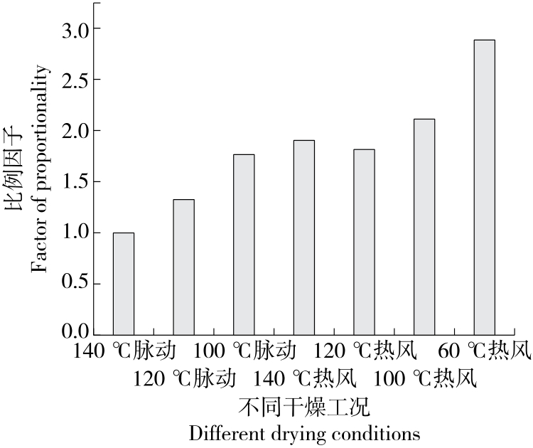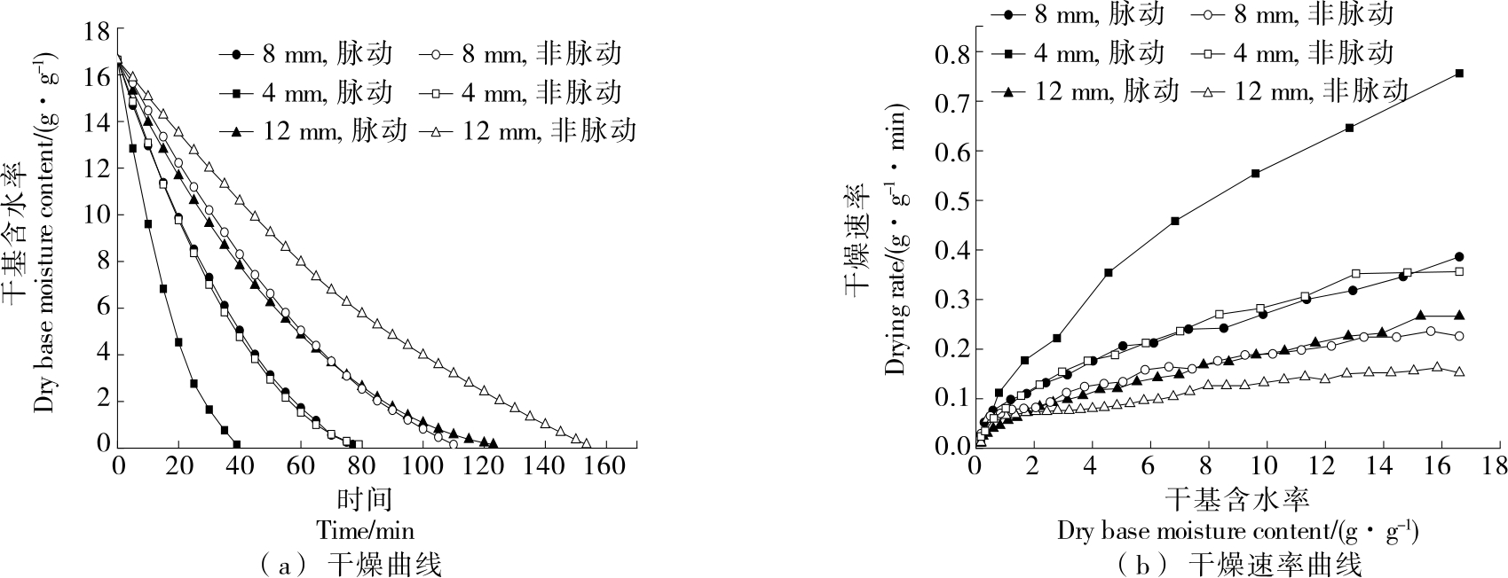摘要:目的 探究自激热声振荡对固体食品干燥过程的强化作用。方法 设计一种基于Rijke管谐振结构的脉动热风干燥装置,以白萝卜片为研究对象,考察热风温度(100~140 ℃)、气流流速(1~7 m/s)及料层厚度(4~12 mm)对干燥动力学与产品品质的影响。结果 该装置可稳定产生温度140 ℃、频率147 Hz、声压级94 dB的自激脉动气流,较传统非脉动干燥效率显著提升:在100 ℃工况下,干燥时间由165 min缩短至135 min(降幅18%),且随温度升高强化效果增强(140 ℃时干燥速率提升3倍);在优化参数组合(温度100 ℃、风速1 m/s、料厚8 mm)下,白萝卜片收缩率(67%)、复水比(4.66)及白度(70.18)均优于传统干燥的。结论 热声振荡通过周期性扰动减薄传热边界层,显著强化热质传递效率,同时减少高温对物料结构的破坏。