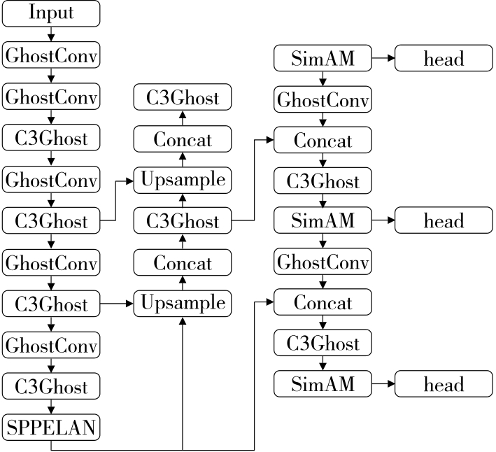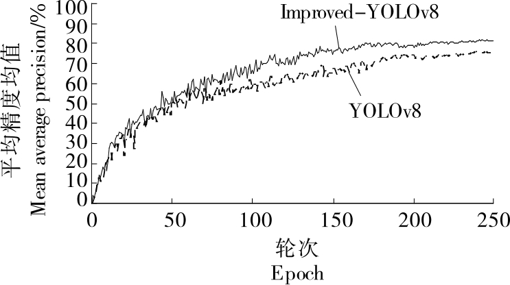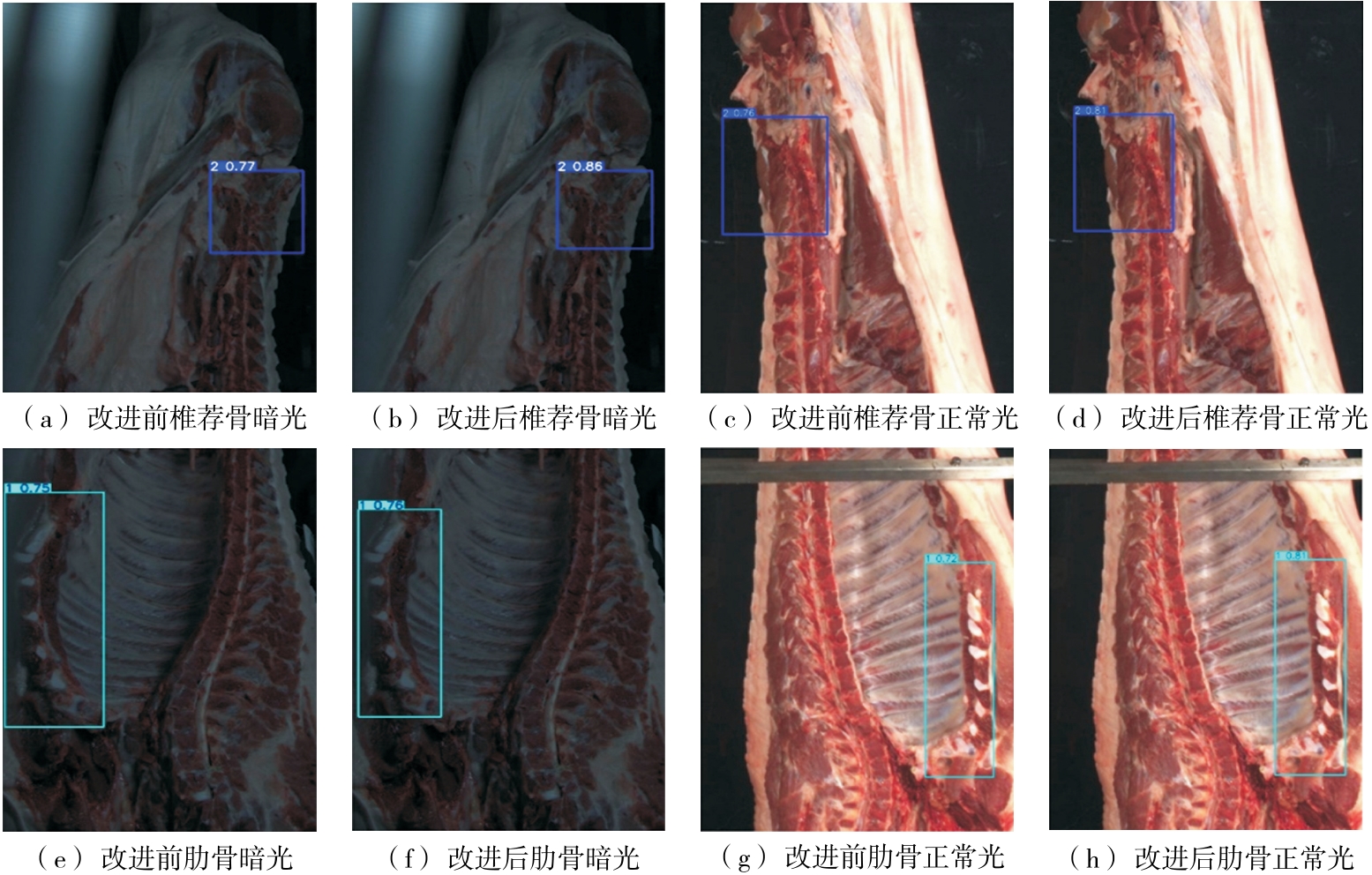 摘要:目的 实现对猪胴体不易区分、相对较小的分割特征的准确、高效检测。方法 通过在Backbone层中引入GhostConv模块和C3Ghost模块替代原有YOLOv8n特征提取网络中的普通卷积和C2模块,以减少计算量,降低模型复杂度;将SPPF模块替换为SPPELAN模块,使模型能更有效应对多尺度和小目标特征;最后在3个检测头前面引入无参数注意力SimAM,提高复杂环境下对下猪胴体小目标特征的识别能力。结果 改进YOLOv8n模型在自制数据集上的mAP50为97.3%,相较原始YOLOv8n提高了5.3%的精度。改进模型的参数量Params和计算量FLOPs分别为1.5 M和4.9 G,模型大小为3.5 MB,仅为YOLOv8n的50.0%,60.5%,55.6%。模型推理速度为120.2帧/s,提高了20.7帧/s。结论 改进YOLOv8n模型在检测精度与轻量化方面具有优势,可以有效识别猪胴体的小目标分割特征。