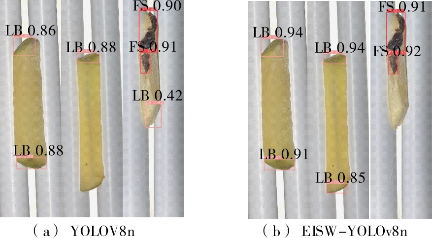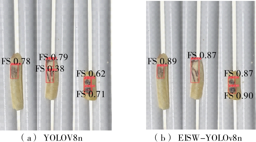 摘要:目的 解决传统预制薯条生产中残次品人工检测速度慢、效率低,易漏检、误检的问题,提高缺陷残次品的识别准确度和速度,保证安全生产。方法 提出了一种基于YOLOv8n改进的识别算法EISW-YOLOv8n。通过在网络中引入EMCA通道注意力机制,突出重要通道信息;为了提高模型对特征的提取能力以及捕获特征中的长距离依赖关系的能力,在C2f模块中引入由SWC卷积优化过的iRMBS模块;引入WIOU损失函数,增强预测框的定位精度以及模型的收敛速度。结果 提出的模型对于预制薯条缺陷检测的平均精度达到94.3%。与原始YOLOv8n模型以及常见的目标检测算法相比,该网络表现出了优越的性能。结论 EISW-YOLOv8n能够满足识别预制薯条的表面缺陷的需求。