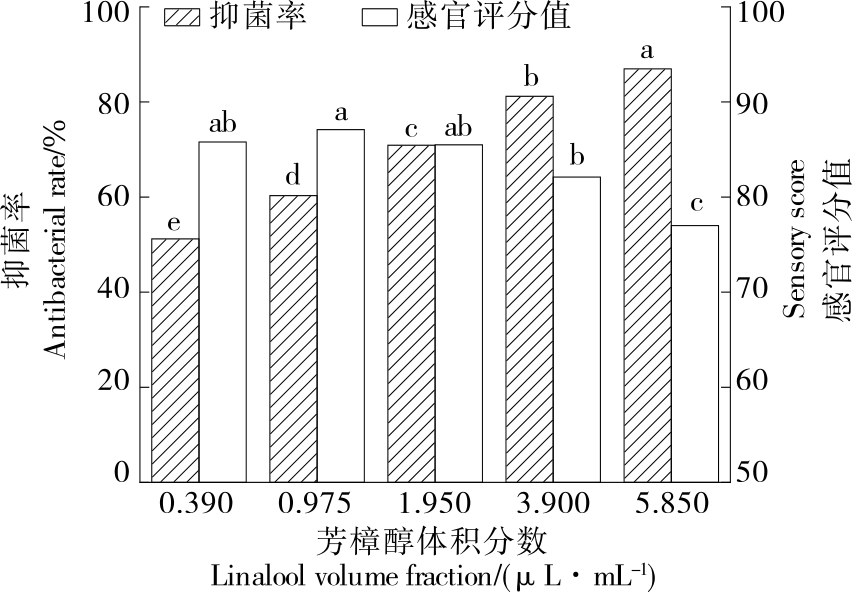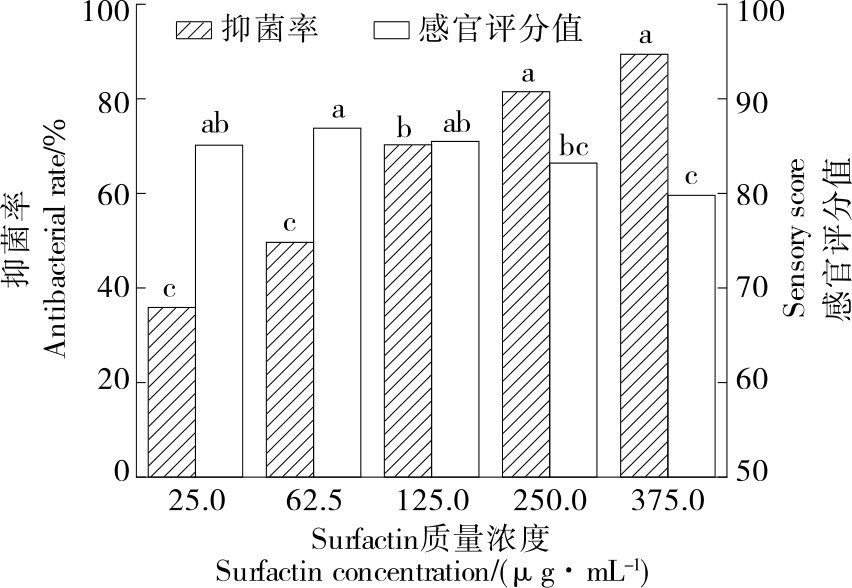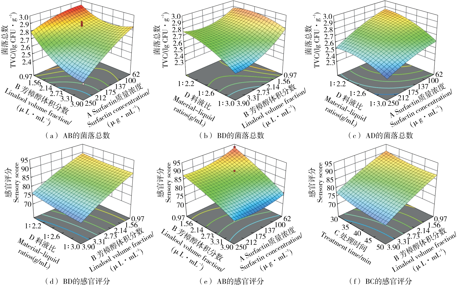 摘要:目的 为替代化学防腐剂,开发基于天然抑菌剂Surfactin与芳樟醇的休闲豆干保鲜工艺。方法 以枯草芽孢杆菌为指示菌,测定Surfactin与芳樟醇的最小抑菌浓度(MIC),以菌落总数、感官评分为评价指标进行单因素和响应面试验优化芳樟醇协同Surfactin对休闲豆干的最佳保鲜工艺参数,并分析贮藏期内休闲豆干品质变化。结果 芳樟醇的最小抑菌体积分数为1.95 μL/mL,Surfactin的最小抑菌质量浓度为125 μg/mL,芳樟醇协同Surfactin对休闲豆干最优保鲜工艺参数为Surfactin质量浓度187.5 μg/mL、芳樟醇体积分数2.2 μL/mL、处理时间30 min、料液比1∶3 (g/mL),该条件下休闲豆干在25 ℃下的货架期由2周延长至4周,4 ℃下可实现4周内菌落总数低于检测限,显著减缓了蛋白质(降幅减少4.09%)和脂肪(降幅减少6.97%)的降解,抑制了丙二醛生成(较对照组减少19.9%)。结论 芳樟醇协同Surfactin能高效抑菌并延缓休闲豆干品质劣变。
