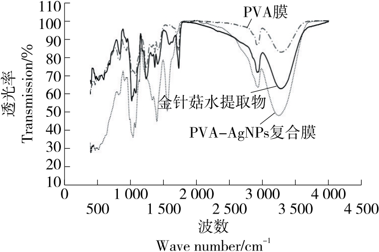 摘要:目的 开发新型包装膜,延长果蔬货架期,提高金针菇利用水平。方法 以金针菇水提取物作为还原剂,聚乙烯醇(PVA)为分散剂,硝酸银溶液作为银来源绿色制备纳米银(AgNPs),制备具有疏水表面的PVA-AgNPs复合膜,并用于猴头菇保鲜。结果 AgNPs的最佳制备条件为pH 13、金针菇水提取物添加量2 g、PVA添加量2 g、硝酸银溶液终浓度0.20%、微波时间60 s。FT-IR、SEM、TEM、XRD及接触角分析显示制备的AgNPs有明显的标准银晶态衍射峰,与成膜基质PVA之间存在作用力,并较好地分散在其中。制备的复合膜成功构建了疏水表面,其接触角为137.3°。结论 通过猴头菇贮藏期间的失重率、维生素C含量、褐变度、过氧化物酶(POD)和过氧化氢酶(CAT)的测定,制备的PVA-AgNPs复合膜可以提高猴头菇保鲜贮藏品质,显示出较好的保鲜效果,具有潜在应用前景。