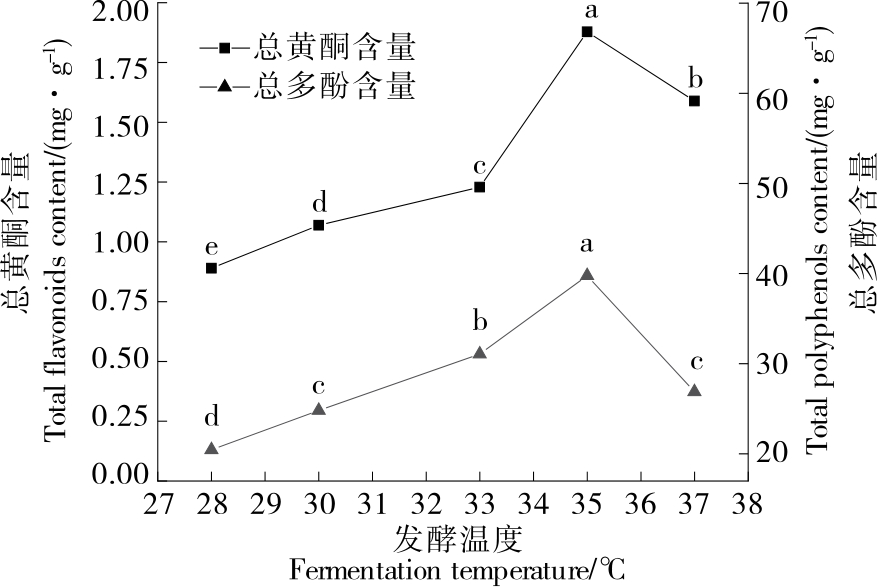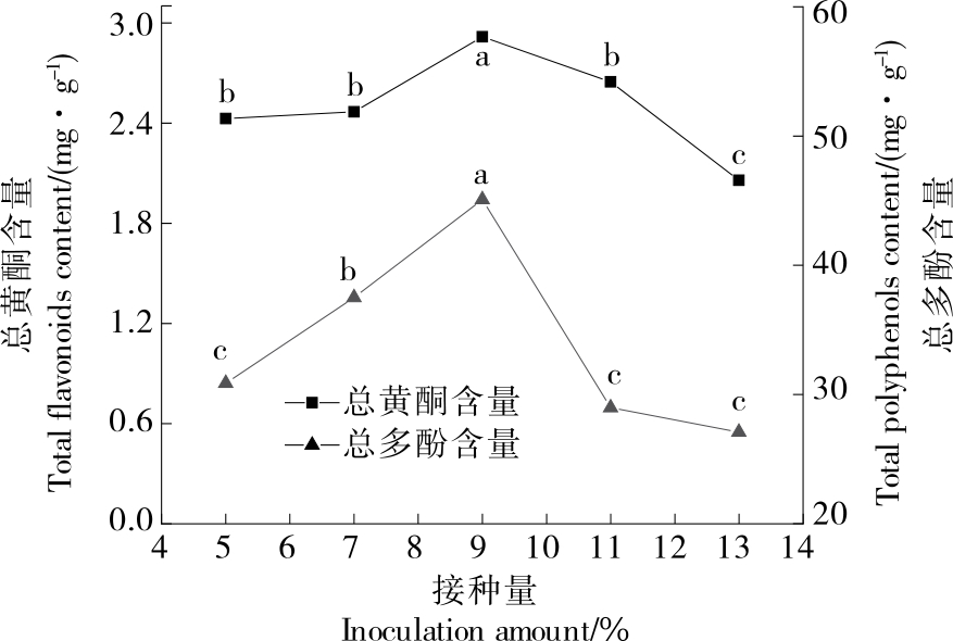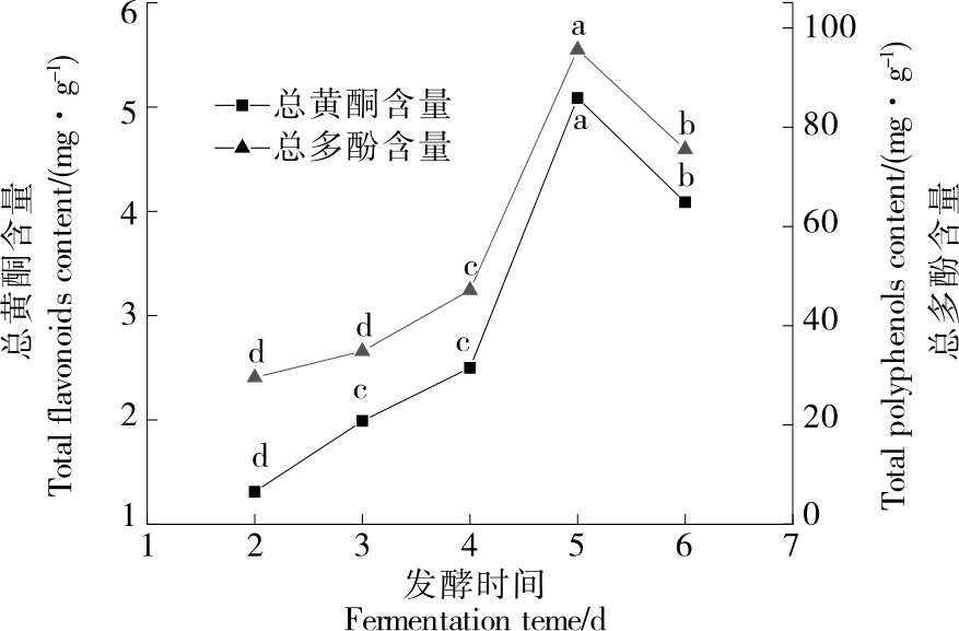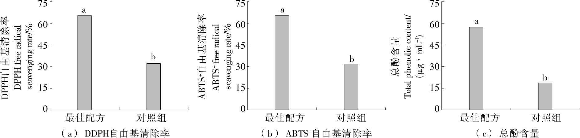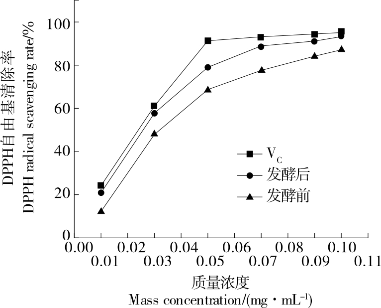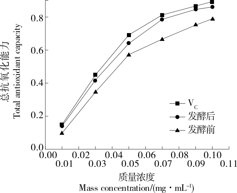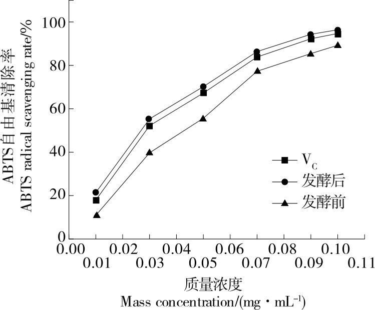 摘要:目的 利用微生物固态发酵提高芡实功能性成分的转化效率。方法 以芡实为原料,以总黄酮和总多酚含量为指标,筛选出优势菌种,再用优势菌进行正交试验,探究发酵温度、发酵时间、料液比、接种量和碳源添加量对发酵后芡实活性成分的影响,并以DPPH自由基清除率、总抗氧化性和ABTS自由基清除率为指标分析芡实的体外抗氧化活性。结果 优势菌为黑曲霉H,最优发酵工艺条件为发酵时间5 d、发酵温度35 ℃、料液比1∶2 (g/mL)、接种量11%、碳源添加量2%,此条件下总黄酮含量为9.036 mg/g,比发酵前的提高了6.24倍,总多酚含量为109.284 mg/g,比发酵前的提高了4.68倍。芡实发酵后对DPPH自由基、ABTS自由基清除率的IC50分别为0.023,0.024 mg/mL。维生素C阳性对照对铁离子的还原能力与发酵后的基本相同,且高于发酵前的。结论 利用微生物对芡实原料进行发酵可有效提升其活性成分含量和抗氧化能力,具有良好的应用前景。