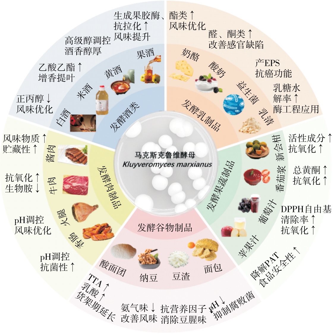 摘要:马克斯克鲁维酵母(Kluyveromyces marxianus)是一种GRAS级别的真菌微生物,以其生产常规及特殊酶的能力以及作为特定酶表达载体的功能而著称。在食品工业领域,K. marxianus作为发酵剂,不仅能有效控制发酵过程,还能显著提升发酵食品品质。文章系统分析了K. marxianus的微生物学特性,对其在果蔬、乳制品、谷物、肉制品及酒类等发酵产品中的应用进行了综述,并对其在未来食品工业中的潜在应用进行了展望。
