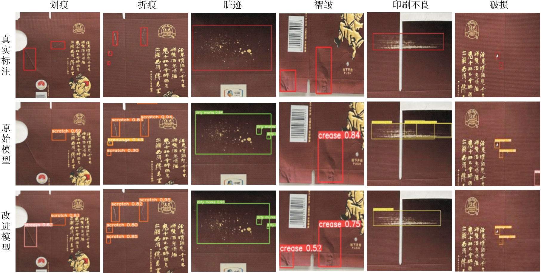 摘要:目的 提高白酒包装缺陷检测准确率。方法 提出了一种基于改进YOLOv8n的检测模型。在模型中引入ADown模块,有效减少了模型的参数量和计算量,同时保持了原有的特征提取能力;通过将大型可分离核注意力(LSKA)融入快速空间金字塔池化(SPPF)结构,进一步提升了模型对多尺度特征的捕捉和提取能力;将原有的CIOU损失函数替换为Inner-WIoU损失函数,将Inner-IoU与Wise-IoU相结合,在提升检测精度的同时加快模型收敛速度。结果 在自制的白酒包装数据集上,改进后的YOLOv8n模型平均精度达86.4%,较原始模型提升了5.2%,参数量减少了4.9%,计算量降低了6.6%。结论 该模型能够满足对白酒包装的实时检测要求。