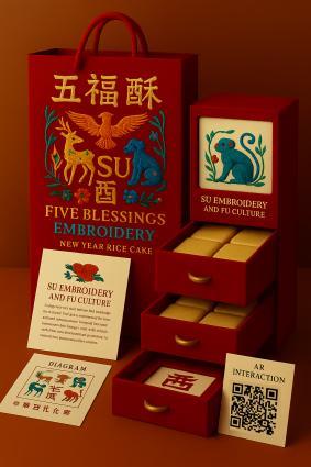 摘要:非物质文化遗产(非遗)手工艺作为中华传统文化的重要载体,在食品包装中具有独特的文化内涵价值与情感表达力。然而,对于非遗手工艺的应用仍普遍存在文化内涵表层化、包装展示静态化、包装互动性不足等问题。文章立足非遗手工艺的文化内涵,结合当代食品包装设计的审美逻辑,提出文化感知—互动体验—情感归属3层融合策略路径,并构建包括符号重构、媒介适配与情感嵌入在内的系统化设计方法。通过运用生成式人工智能(AIGC)、增强现实技术(AR)及数字设计技术等智能视觉技术手段,完成食品包装实践设计,并验证了融合策略的应用可行性。