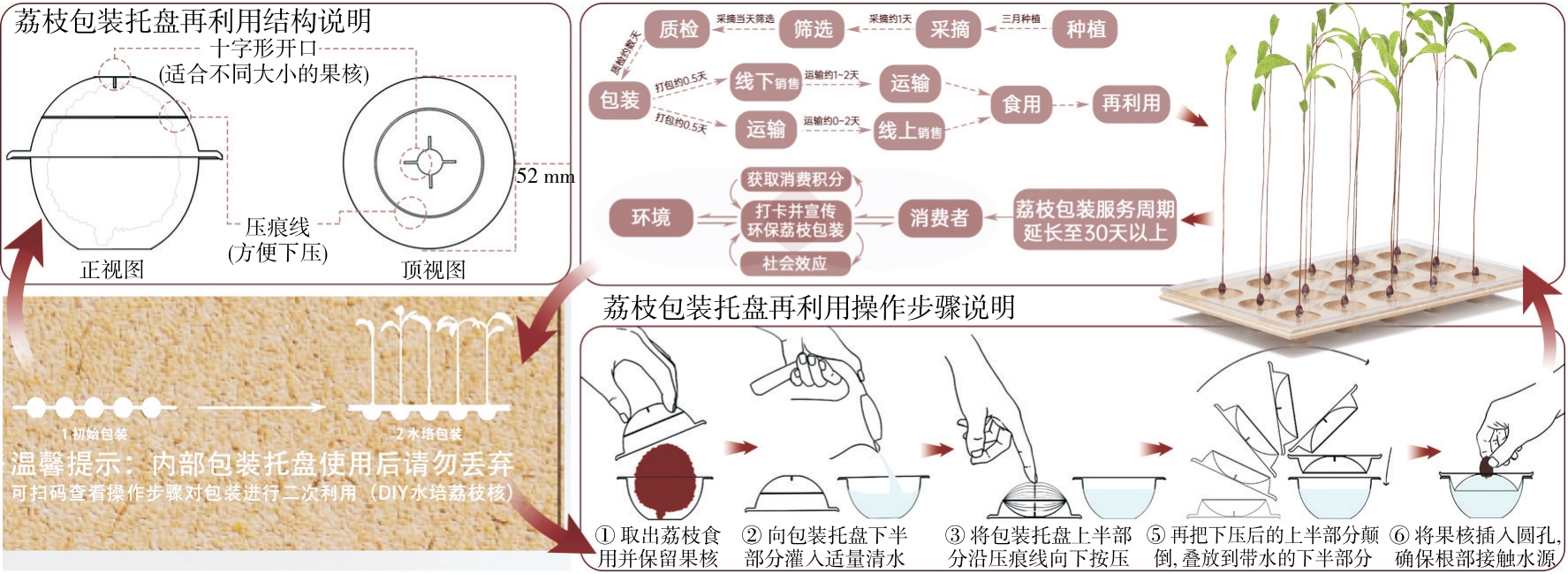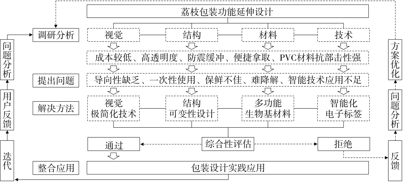 摘要:文章阐述了现阶段中国果蔬产业所面临的难题与挑战,提出了果蔬包装功能延伸设计的解决策略;通过系统分析国内外果蔬包装功能延伸的理论研究与优秀设计案例,分别从包装视觉、结构、材料、技术4个维度总结出果蔬包装功能延伸设计的方法及流程,并将其应用于应季水果荔枝包装设计实践。