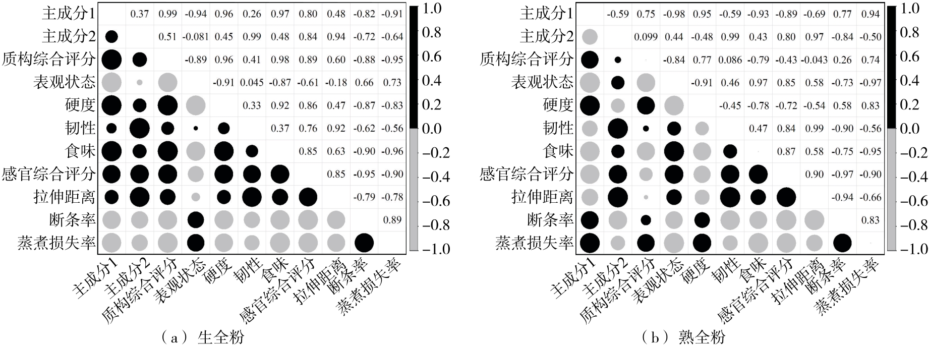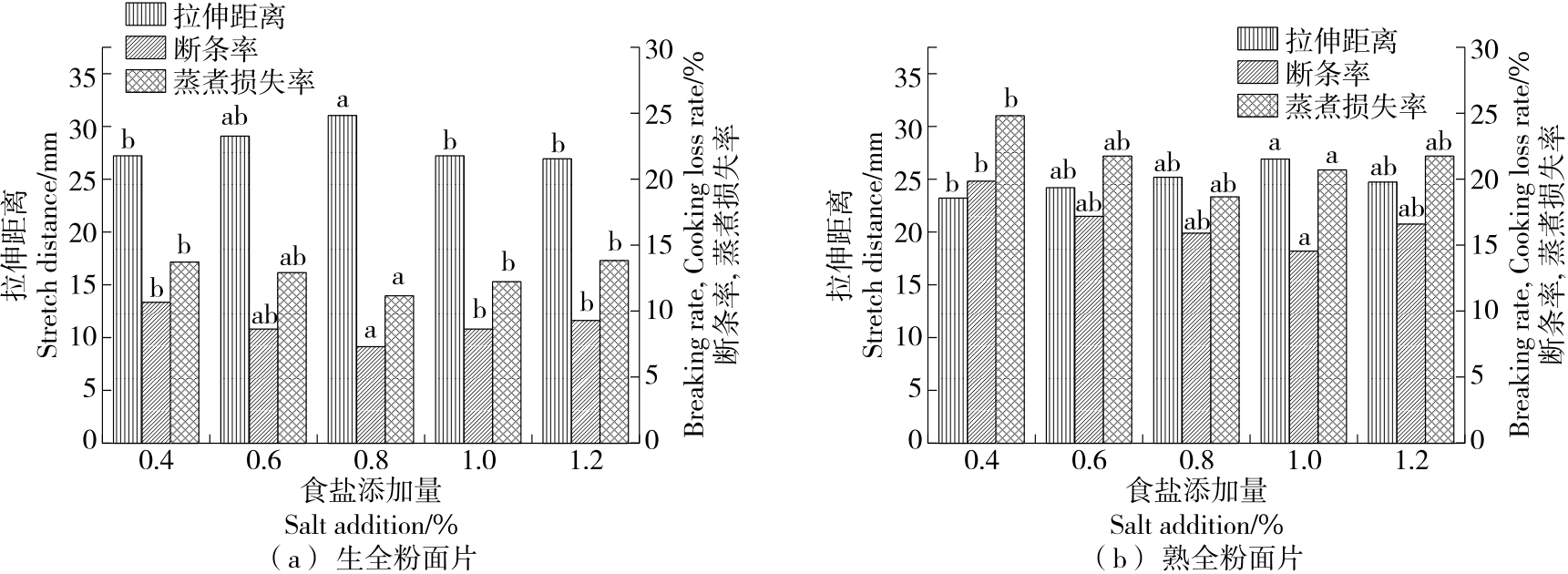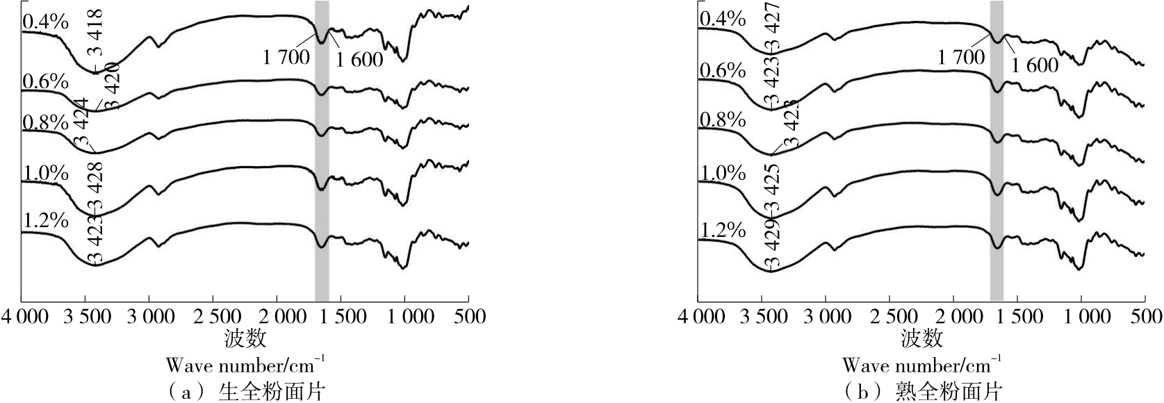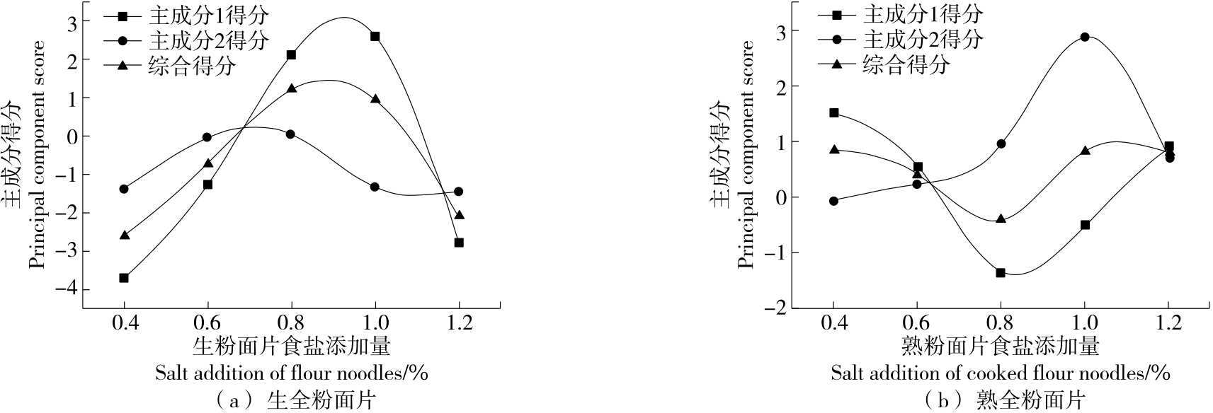 摘要:目的 探究马铃薯生粉和熟粉面片质构、面条品质在不同食盐添加量下的变化规律。方法 考察食盐添加量对马铃薯全粉面片质构和面条品质的影响,运用主成分分析法对质构降维,依靠红外光谱分析蛋白质结构变化,并结合模糊感官进行相关性分析。结果 面片质构主成分1为硬度因子,与断条率、蒸煮损失率等相关性较强,主成分2为弹力因子,与韧性和拉伸特性相关性较强,综合质构评价受主成分1影响更大;生粉面片的有序结构含量比熟粉面片的高,二者分别在食盐添加量为0.8%和1.0%时的质构、感官、拉伸特性和蒸煮特性最佳。结论 适量添加食盐有利于面条品质提升,食盐通过影响面片中蛋白质网络的构象来影响面片质构,面片质构与面条品质关系密切,熟粉面条受食盐影响小,性质更稳定。