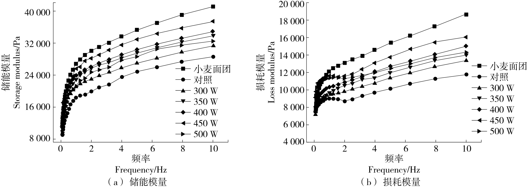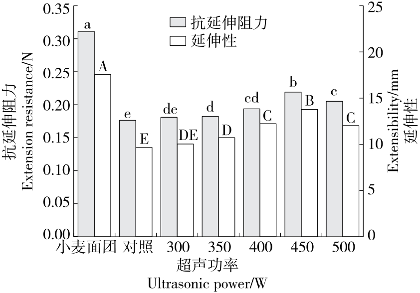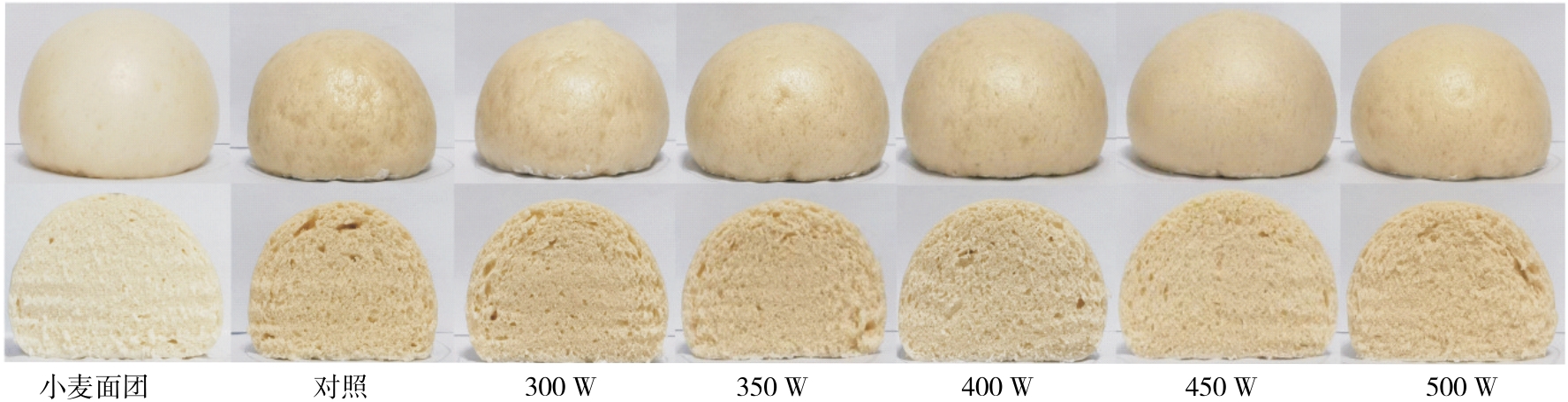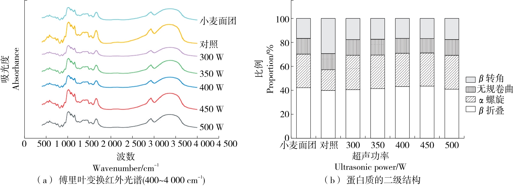 摘要:目的 获得高品质的芋头生浆馒头。方法 使用超声辅助芋头生浆面团发酵,探究超声功率(300~500 W)对面筋蛋白二级结构,面团的拉伸特性、流变学特性,馒头的比容、质构和色差的影响。结果 超声处理改善了芋头生浆面团的拉伸和流变学特性,降低了游离巯基含量,并提高了面筋网络结构有序性和稳定性,馒头的比容、表观和质构特性也优于对照组。当超声功率为450 W时,面团呈现出最佳黏弹性,游离巯基含量下降了30.51%,馒头比容提高了8.79%,硬度降低了21.61%,馒头表皮光滑,馒头瓤空隙小而均匀。结论 超声处理可以改善芋头生浆面团的加工特性,超声功率为450 W时改善效果最佳。