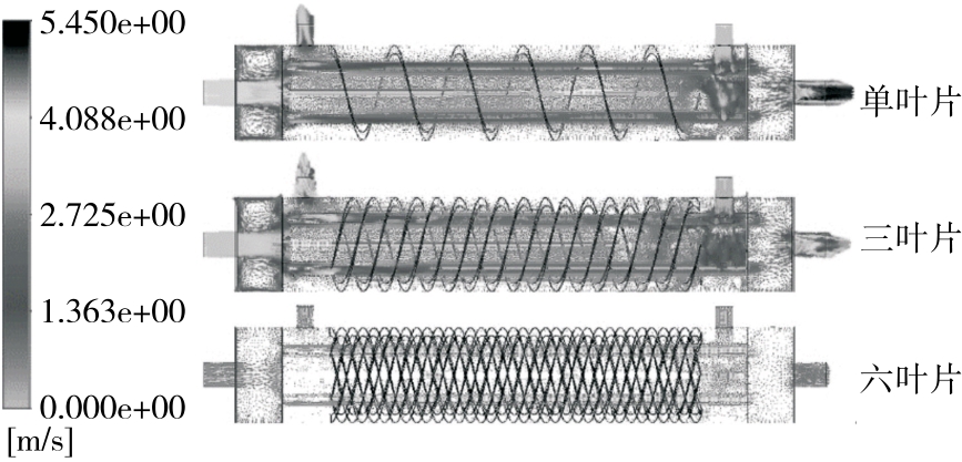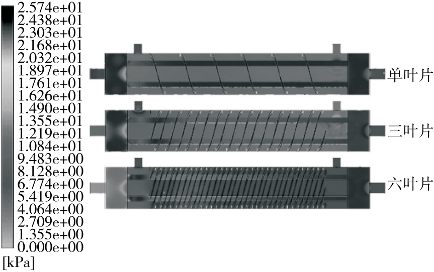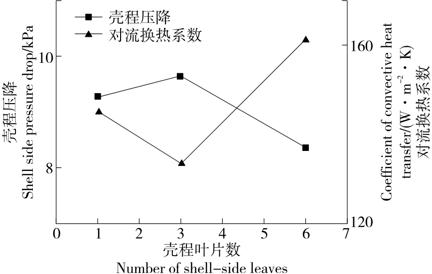摘要:目的 对气相旋转换热器进行结构优化,改善单叶片壳程结构气相旋转换热器换热效率较低的问题。方法 通过建立简化模型和CFD法,对3种壳程结构换热器性能进行分析。以壳程压降和对流换热系数为试验指标,探究工作圈数、叶片高度、叶片宽度等主要参数对壳程压降和对流换热系数的影响规律,并进行优化与验证。结果 六叶片结构换热器的总体性能较好,壳程压降降低了7%~8%,对流换热系数提高了8%~10%。当工作圈数为3、叶片高度为45.05 mm、叶片宽度为4.79 mm时,六叶片结构换热器的最小壳程压降为6.95 kPa,较优化前降低了15%~21%;最大对流换热系数为183.35 W/(m2·K),较优化前提高了10%~12%。壳程压降模拟值与试验值误差≤6%,对流换热系数模拟值与试验值误差≤5%,优化结果可靠。结论 在优化后的壳程结构下,气相换热器具有良好的换热性能。
