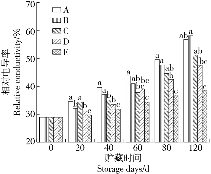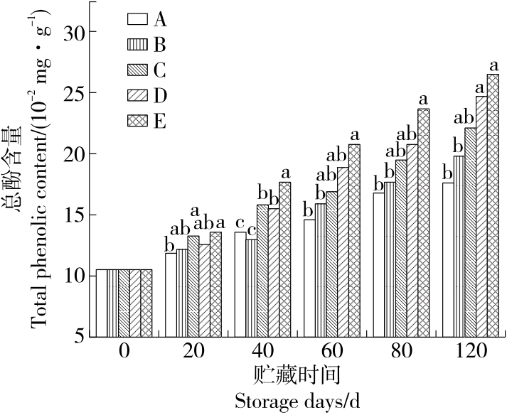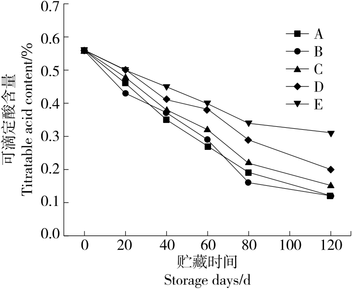 摘要:目的 提高苹果果实在采后贮藏期间的品质并延长货架期。方法 以富士苹果为试验对象,采用涂膜法制备含有1.5%壳聚糖和不同浓度黄精精油的复合保鲜液,将苹果果实在复合保鲜液中进行浸泡涂膜,分析苹果果实采后贮藏期间的腐烂率、可滴定酸含量、多酚氧化酶活性、总酚含量、细胞质膜透性以及感官品质等指标。结果 与空白对照组和纯壳聚糖处理组相比,添加黄精精油的保鲜组能更好地保持苹果果实的感官品质。贮藏120 d后,2.0%黄精精油处理组的腐烂率仅为9.18%,可滴定酸含量下降幅度小,总酚含量高达26.5 mg/100 g,相对电导率为38.5%,且显著抑制了多酚氧化酶活性的上升,并减缓了感官品质评分的下降。结论 含有1.5%壳聚糖和2.0%黄精精油的复合涂膜能显著延长富士苹果的贮藏期,并有效保持其品质和感官属性。