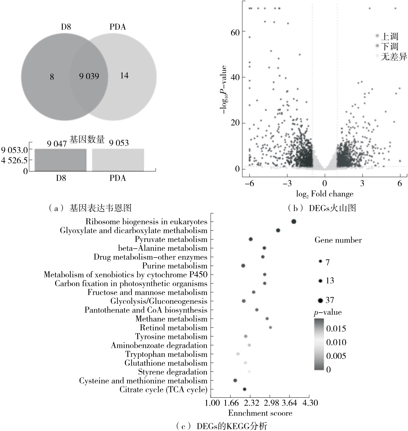 摘要:目的 分析红曲霉调控相关基因对罗布麻多酚物质释放的影响。方法 采用红曲霉发酵罗布麻,测定多酚物质含量,并进行转录组分析。结果 以总多酚、可溶性多酚、不可溶性—结合态多酚、绿原酸、木犀草苷、紫云英苷、槲皮素含量为评价指标,发酵第8天可显著提升罗布麻中多酚物质的释放。根据转录组分析显示,1,3-β-GT、XTH23等碳水化合物活性酶基因的调控表达为红曲霉释放罗布麻内多酚物质的主要因素。结论 红曲霉发酵可显著提升罗布麻中多酚物质含量。
