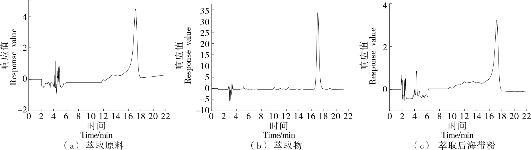 摘要:目的 考察超临界CO2萃取工艺对海带粉脱出脂溶性化合物的影响。方法 以脱脂率为指标优化超临界CO2萃取分离海带粉工艺条件,采用顶空—气相色谱—离子迁移谱、气相色谱和高效液相色谱分别检测萃取前后挥发性风味物质、脂肪酸组成和岩藻黄素的变化。结果 超临界CO2萃取海带粉的最佳工艺条件为:萃取温度50 ℃、萃取压力45 MPa、萃取时间3 h,该条件下海带粉脱脂率为36.23%;萃取前后海带粉中共检测定性到70种挥发性风味物质,其中萃取后海带粉中呈腥味或刺激性气味物质的相对含量比原料中的明显降低,整体风味得到很大改善;脂肪酸组成检测结果发现,萃取物中单不饱和脂肪酸占比明显较高,达到(28.87±0.23)%,而花生四烯酸(ARA)、二十碳五烯酸(EPA)等多不饱和脂肪酸在萃取后的海带粉中占比更高,达到(37.72±2.36)%;海带粉、萃取后海带粉和萃取物中岩藻黄素质量分数分别为0.050,0.039,4.766 mg/g。结论 超临界CO2萃取能够有效去除海带粉中具有腥味等刺激性气味的挥发性风味物质,同时分离出海带粉中脂类物质和岩藻黄素。
