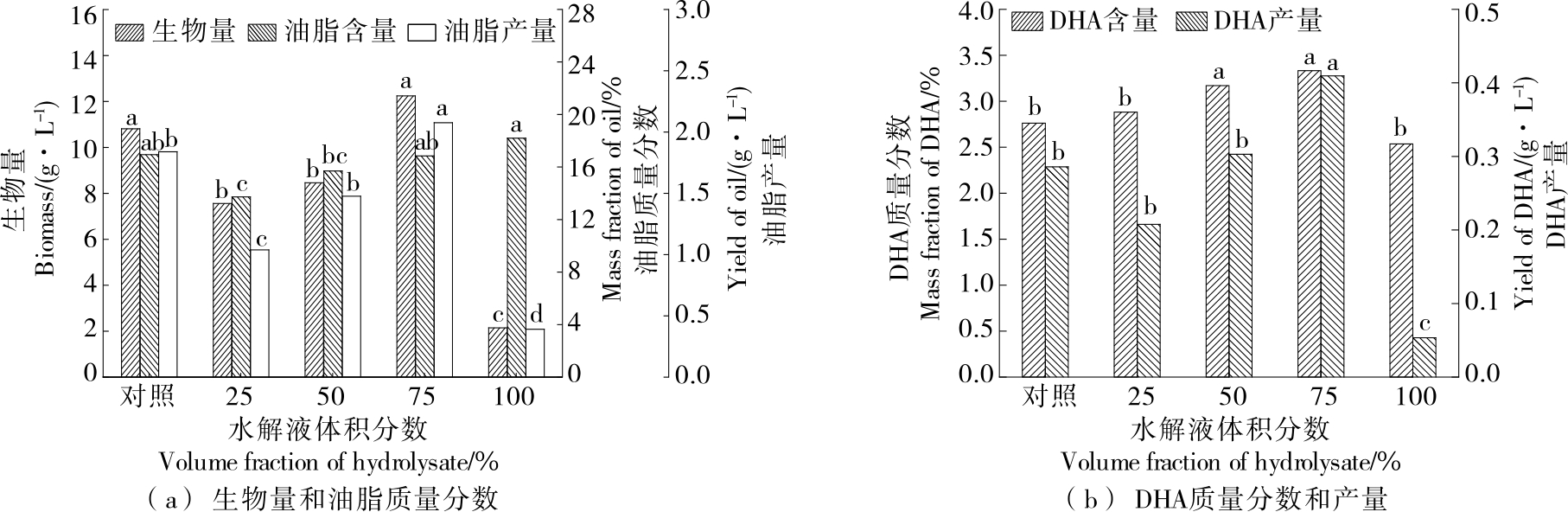 摘要:目的 探索啤酒废酵母水解液养殖裂壶藻生产DHA藻油的可行性。方法 以还原糖质量浓度和总氮质量浓度为响应值优化超声辅助复合酶法破壁水解废啤酒酵母,并利用水解液培养裂壶藻生产DHA藻油。结果 在超声功率400 W,温度60 ℃,pH 5.0,木瓜蛋白酶添加量0.5 g,mβ-葡聚糖酶∶m木瓜蛋白酶=4∶5,超声40 min,所得水解液中还原糖和总氮质量浓度达到最大,分别为20.40,6.72 g/L。水解液体积分数75%,裂壶藻接种体积分数14%,培养3 d,裂壶藻的生物量、油脂产量以及DHA质量分数和产量达到最大,分别为17.14 g/L,2.88 g/L,3.13%,0.55 g/L,均较传统发酵培养养殖裂壶藻的生物量(10.29 g/L)、油脂产量(1.84 g/L)以及DHA质量分数(2.76%)和产量(0.29 g/L)高,所得藻油的致病菌和重金属指标均低于食品安全国家标准的最低限量。结论 利用超声辅助复合酶法所得废啤酒酵母水解液养殖裂壶藻生产DHA是可行的,可以实现食品生产废弃物处理和微藻化工产品生产的有机统一。