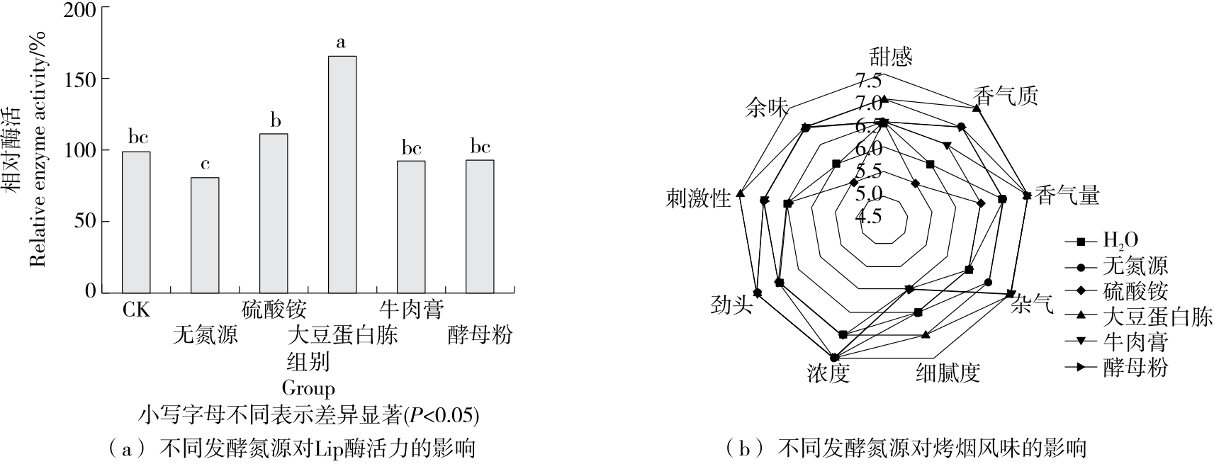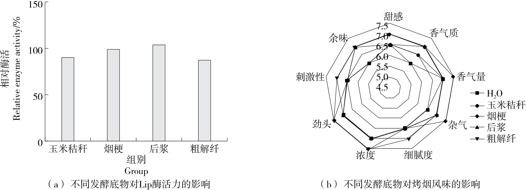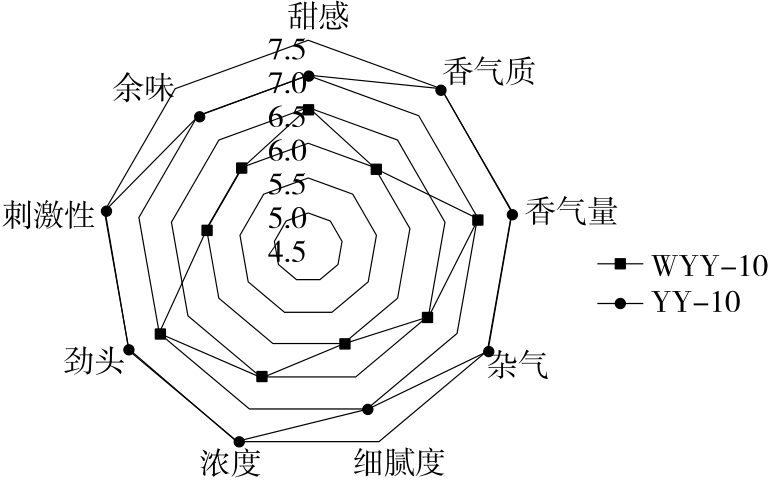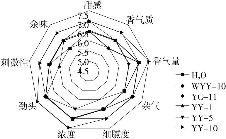 摘要:目的 研究木质素降解菌应用于烤烟风味改善的效果。方法 通过木质素降解酶活力测定,并结合感官评析效果对微生物进行筛选。得到功能菌株后对其进行发酵优化,最后使用GC-MS分析菌株处理后的烤烟挥发性风味物质的变化。结果 获得产木质素过氧化物酶(Lip)的枯草芽孢杆菌YY-10,该菌株的粗酶液对烤烟样品中酸不溶性木质素的降解率达到31.04%。粗酶液的作用使样品中挥发性风味物质含量显著增加,香气质量和细腻度也得以提高。结论 高产Lip的枯草芽孢杆菌YY-10对烤烟风味具有改善作用。