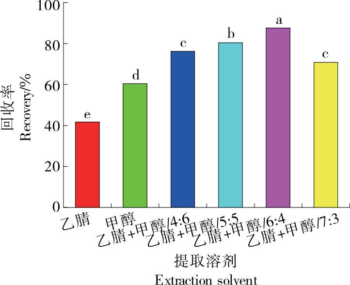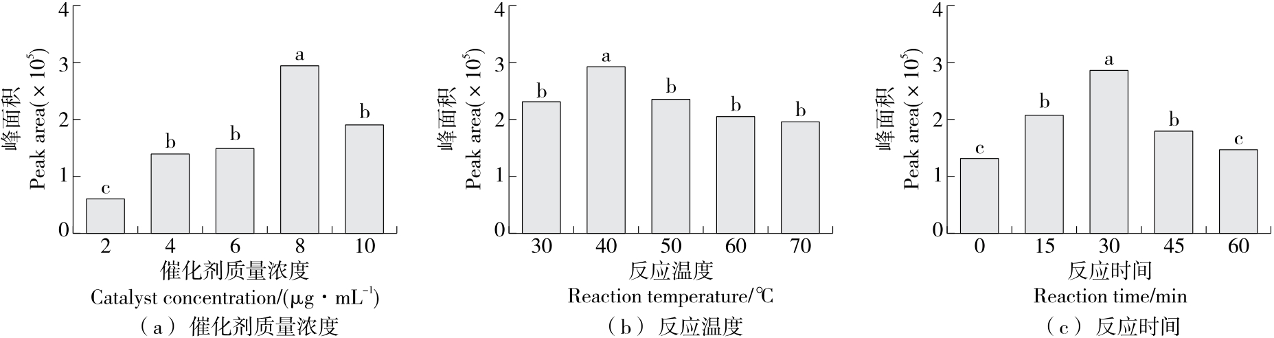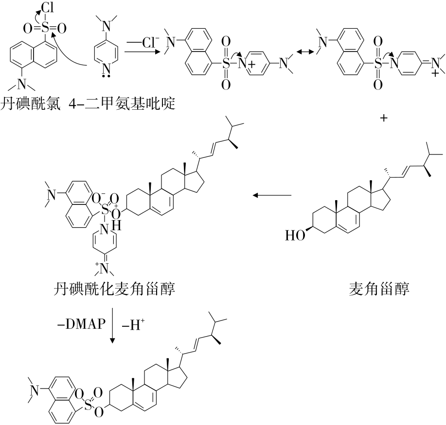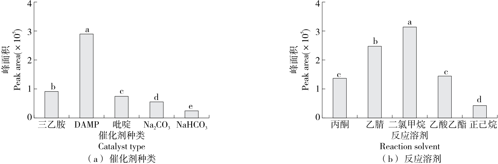 摘要:目的 提高麦角甾醇在电喷雾电离源的响应,并探究麦角甾醇的丹磺酰化衍生方法。方法 以丹磺酰氯为衍生试剂,4-二甲氨基吡啶(DMAP)为催化剂,采用响应面试验优化衍生化条件。采用C18色谱柱分离,0.15%甲酸—甲醇溶液等度洗脱,离子源为ESI源,多反应监测模式检测,并同时测定10种食用菌中麦角甾醇含量。结果 最佳的衍生条件为反应温度36 ℃,反应时间25 min,DMAP质量浓度8 μg/mL。麦角甾醇衍生后的线性范围为25~2 000 ng/mL,检出限为13.4 ng/mL,定量限为149 ng/mL,灵敏度较衍生前提高了51.94倍。10种食用菌中,香菇中的麦角甾醇含量最高,为(4.21±0.083) mg/g。结论 试验方法操作简单,具有较高的灵敏度和准确性。