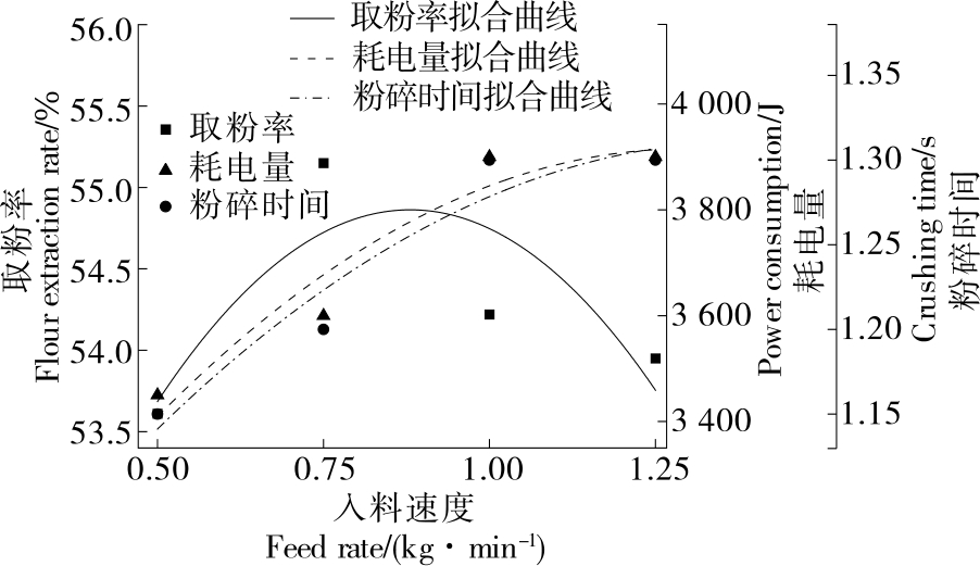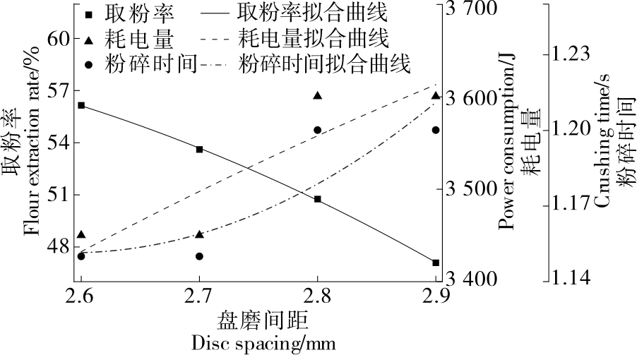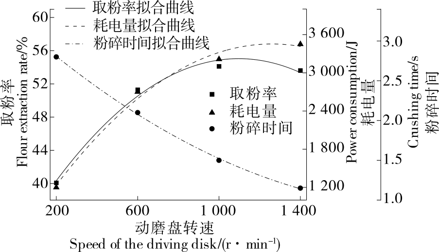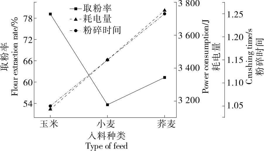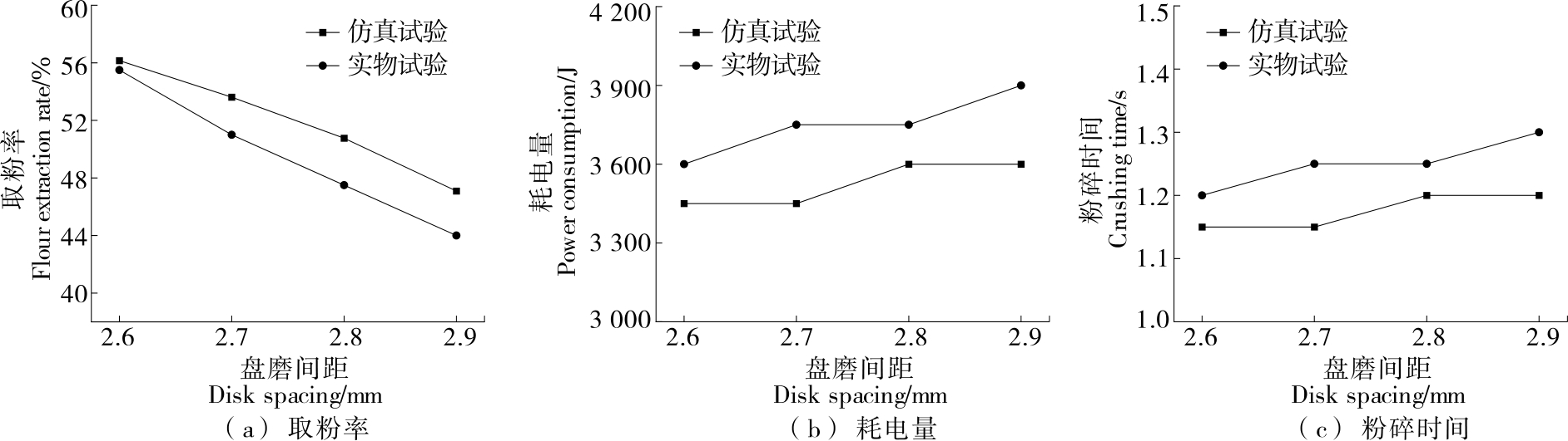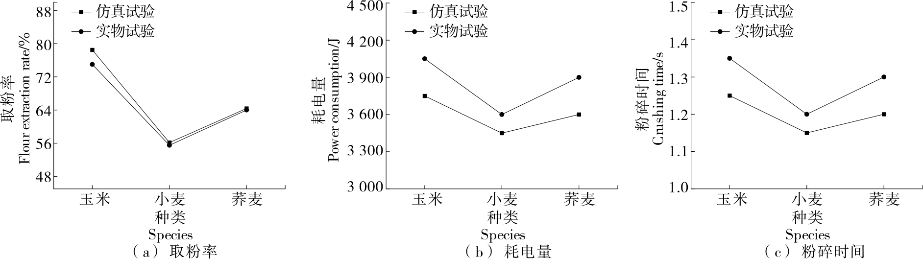摘要:目的 研究盘式磨粉机粉碎不同物料时不同工作参数对工艺效果的影响,并对其工作参数进行优化。方法 采用Rocky DEM离散元软件对盘磨研磨过程进行模拟,变量包括入料速度、磨盘间距、动磨盘转速和入料种类。分析这些因素对取粉率、耗电量和粉碎时间的影响,并使用正交试验设计和矩阵分析方法对数值模拟结果进行综合评估。结果 盘磨研磨过程中不同入料参数对应的最优参数组合方案为:粉碎小麦时磨盘间距2.70 mm、入料速度0.75 kg/min、动磨盘转速1 000 r/min;粉碎玉米时磨盘间距2.80 mm、入料速度0.75 kg/min、动磨盘转速1 400 r/min;粉碎荞麦时磨盘间距2.60 mm、入料速度0.75 kg/min、动磨盘转速600 r/min,得到了不同颗粒大小与杨氏模量对应不同盘磨间距与动磨盘转速的回归模型。结论 通过正交试验与矩阵分析优化了小麦、玉米和荞麦的粉碎工艺,并构建了自适应回归模型,提升了磨粉机的操作效率和能效。
