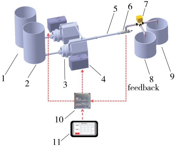摘要:目的 优化液蛋生产中蛋黄液和蛋清液(全蛋液)的配比控制系统。方法 单片机通过触摸屏输入的蛋黄液和蛋清液(全蛋液)配比指令,通过模糊PID控制算法,控制变频器的频率及泵的转速,与电导率仪在线监测的反馈信号进行比较,以实现蛋清液和蛋黄液的实时精确配比;并应用Matlab软件中的Simulink仿真比较了传统PID算法、粒子群优化PID算法和模糊PID算法的性能。结果 仿真结果表明,模糊PID的超调量小、调整时间短且动态响应能力强。在配比试验中,模糊PID算法的液蛋配比控制系统的最大电导率误差为0.17 mS/cm,蛋黄质量分数与实际值相差3.4%,系统达到稳定所需时间为10 s左右,稳定时蛋黄质量分数最大误差为0.8%。结论 试验设计的液蛋配比控制系统能够有效减小配比误差、响应速度快、稳定性好,可实现实时在线监测与配比控制,提高液蛋生产设备的智能化水平。