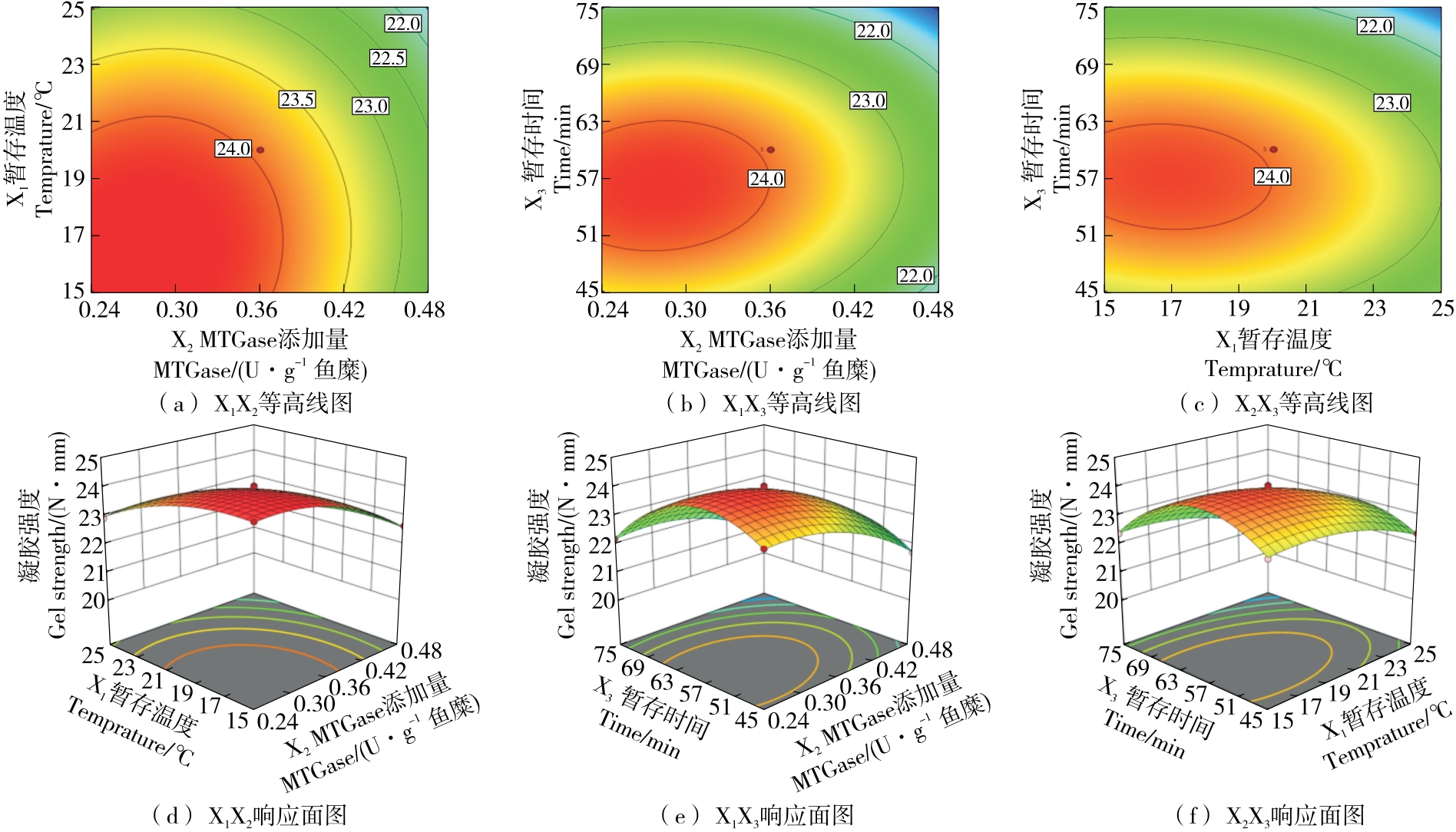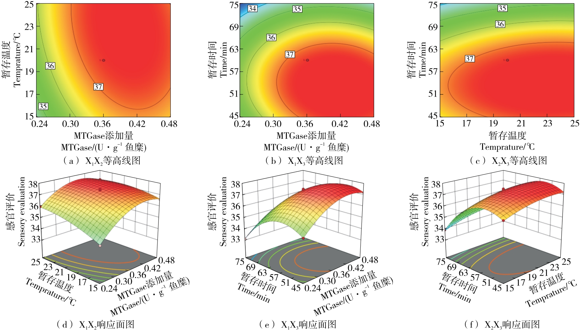 摘要:目的 解决鱼糕工业化生产过程中因暂存条件不当导致的凝胶品质下降问题。方法 以冷冻鱼糜为原料制备鱼糕,研究微生物转谷氨酰胺酶(MTGase)添加量及暂存温度和时间对鱼糕力学特性、外观色度、持水特性和感官品质的影响,并通过响应面试验优化工艺参数。结果 MTGase添加量、暂存温度和暂存时间对鱼糕的全质构分析(TPA)参数、穿刺特性、色度、持水特性和感官评分有显著影响(P<0.05)。经响应面优化获得最佳工艺参数为:MTGase添加量0.35 U/g鱼糜、暂存温度 19.2 ℃、暂存时间 55.4 min,在此条件下制作的鱼糕凝胶强度和感官评分最高,分别为24.15 N·mm和37.38。结论 在鱼糕工业化生产过程中,MTGase适宜添加量为0.35 U/g鱼糜,混合鱼浆的暂存条件宜选择较低的暂存温度(不高于19.2 ℃),暂存时间不宜超过55.4 min。