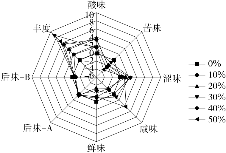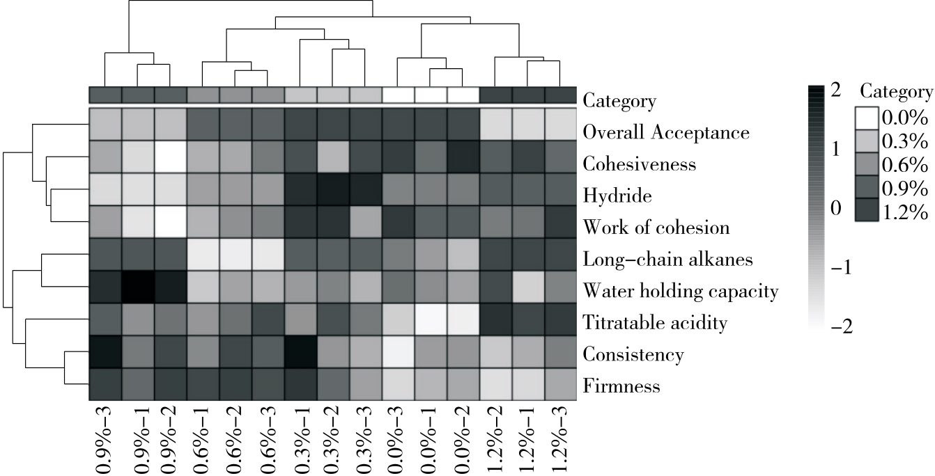 摘要:目的 探究白芸豆提取物对凝固型酸奶理化性质和风味的影响。方法 采用酸度计、滴定法、离心称重法、质构仪和电子鼻分别测定凝固型酸奶的pH值、酸度、持水性、质地和挥发性风味特征。结果 白芸豆提取物可显著促进酸奶发酵进程(P<0.05),其持水力、硬度及苯类挥发性风味物质含量均优于对照组。添加0.9%白芸豆提取物可使酸奶持水力、硬度与黏稠度分别提高13.11%,9.46%,13.19%。此外,添加白芸豆提取物可减少酸奶氢化物、氮氧化合物挥发性风味物质含量,提高长链烷烃挥发性风味物质含量。相关性热图显示,0.9%白芸豆提取物添加量与酸奶持水力、长链烷烃挥发性风味物质含量、硬度、黏稠度、黏性绝对值及内聚性绝对值呈正相关性,表明其可协同优化酸奶质构与风味,提升综合品质。结论 添加0.9%白芸豆提取物可促进酸奶发酵,显著改善凝固型酸奶质地特性和风味特征。