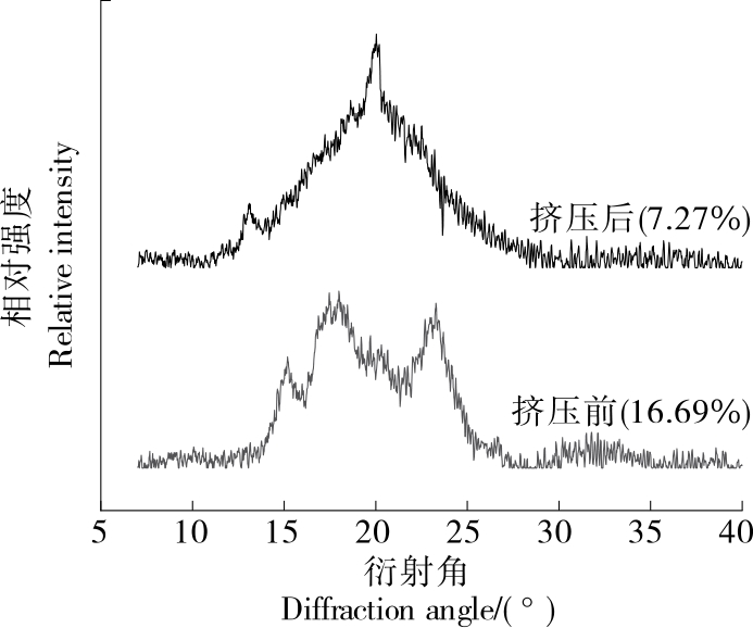 摘要:目的 探讨挤压膨化技术对海红米理化性质、消化特性及营养成分的影响。方法 采用响应面法优化海红米挤压膨化工艺参数。通过水溶性指数(WSI)、糊化度、淀粉消化特性(包括快消化淀粉、慢消化淀粉和抗性淀粉)及抗营养因子(植酸)含量等探究挤压处理对海红米粉理化性质的影响,并对挤压前后海红米粉的微观结构、淀粉晶型和结晶度进行表征。结果 经过挤压膨化处理,海红米粉的水溶性和糊化度得到改善,其水溶性指数(WSI)为18.48%,糊化度达到了95.35%;海红米粉的淀粉晶型由A型转变为V型,结晶度下降了56.44%(P<0.01),且其黏度系数和糊化峰值温度显著降低。挤压膨化还能降低海红米粉中抗营养因子植酸含量18.83%(P<0.01),提高其快消化淀粉比例,降低抗性淀粉含量,体外淀粉消化率升至74.72%。结论 挤压膨化技术显著改善了海红米的理化性质,降低了抗营养因子含量并有效保留了其营养成分,提升了淀粉的消化特性。