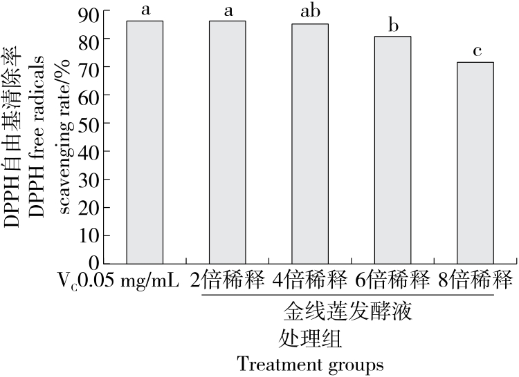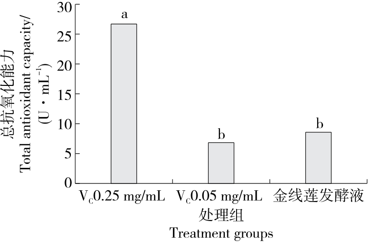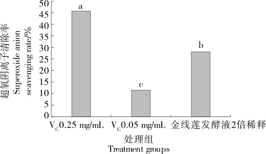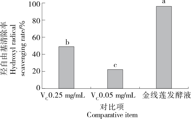 摘要:目的 分析植物乳杆菌发酵金线莲工艺及抗氧化活性。方法 以金线莲为原料,植物乳杆菌191046为发酵菌种,金线莲多糖含量为评价指标,通过单因素试验结合响应面试验优化金线莲发酵工艺,并评价其体外抗氧化活性。结果 金线莲的最佳发酵工艺条件为植物乳杆菌接种量4.50 g/L、发酵时间17 h、发酵温度36 ℃,此时金线莲发酵液中多糖含量为(24.84±0.05) mg/mL。该发酵液总抗氧化能力为(8.67±0.85) U/mL,羟自由基清除率为(96.11±0.90)%;2倍稀释液的超氧阴离子自由基清除率为(28.03±2.00)%,DPPH自由基清除率可达(86.13±0.17)%。结论 金线莲经植物乳杆菌191046发酵后,其抗氧化活性良好。