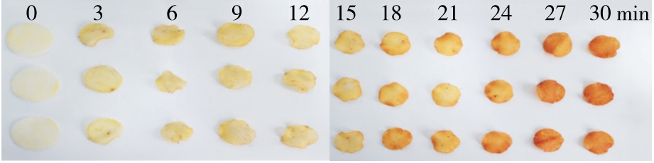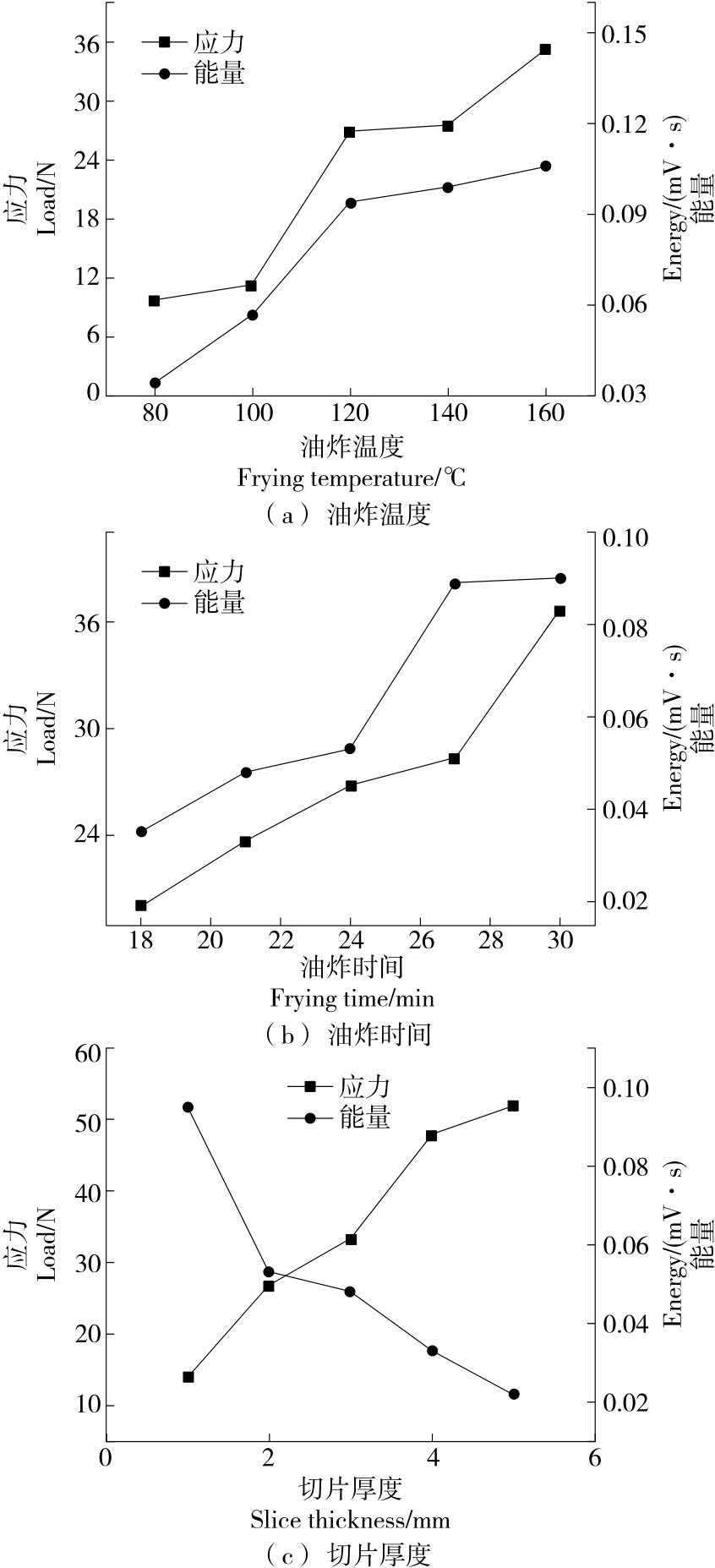 摘要:目的 为定量和全面地测量油炸食品脆性,研究油炸过程中马铃薯片脆性变化规律,并优化马铃薯片的油炸工艺。方法 采用食品脆性机械—声发射综合测量装置,以质构仪测得的最大机械压缩应力和声发射仪检测到的最大声发射能量为指标参数,测量油炸马铃薯片脆性;并研究油炸过程中马铃薯片脆性变化规律,同时利用单因素试验和响应面优化分析法寻找最佳油炸工艺条件。结果 马铃薯片油炸过程中,最大机械压缩应力和最大声发射能量在含水率80%~22%时先小幅增加,在含水率22%~7%时快速增加;其后最大机械压缩应力随着含水率降低仍快速增加,而最大声发射能量保持不变。优化后的油炸工艺条件为:油炸温度160 ℃、油炸时间21 min、切片厚度1 mm。在此条件下,响应值最大机械压缩应力和最大声发射能量分别为17.13 N和0.154 mV·s。结论 机械—声发射综合检测方法可用于油炸食品脆性测量及油炸工艺优化。