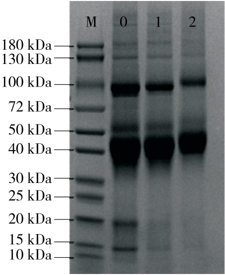 摘要:目的 利用塔格糖糖基化改善蛋清蛋白(EWP)的功能特性。方法 对比糖基化蛋清蛋白(G-EWP)、热处理蛋清蛋白(H-EWP)和蛋清蛋白的抗氧化性、乳化及其稳定性、起泡及其稳定性的差异,并采用十二烷基硫酸钠—聚丙烯酰胺凝胶电泳、傅里叶变换红外光谱、圆二色谱、扫描电子显微镜、粒径分析等探究糖基化蛋清蛋白的结构变化机理。结果 相较于EWP和H-EWP,G-EWP的抗氧化性、乳化性、乳化稳定性、起泡性和泡沫稳定性均显著提高(P<0.05);糖基化后相对分子质量增大,塔格糖与蛋清蛋白发生共价接枝,α-螺旋、β-折叠、β-转角含量发生变化,形态由球状变为大块状复合物,平均粒径由153.53 nm降至129.33 nm(P<0.05),Zeta电位值由-22.68 mV下降至-31.83 mV(P<0.05)。结论 塔格糖糖基化能明显改善EWP的功能特性。