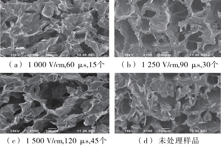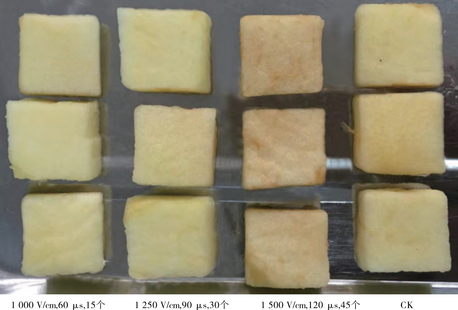 摘要:目的 探究高压脉冲电场处理对冷冻苹果品质的影响。方法 以苹果样品为试验材料,采用高压脉冲电场处理方法,通过观测苹果样品冻结曲线、冻结时间和微观组织结构的变化,分析高压脉冲电场对苹果样品冻结过程和细胞结构的影响。测量苹果样品解冻后质构参数、汁液流失率、营养成分以及色泽等品质指标,分析高压脉冲电场对冻结苹果解冻品质的影响及其机理。结果 高压脉冲电场处理缩短了苹果样品冻结时通过最大冰晶生成区的时间;1 000 V/cm,60 μs,15个的高压脉冲电场处理的苹果样品微观组织细胞孔隙空间相对较小,减缓了冻结对细胞结构的破坏;1 000 V/cm,60 μs,15个和1 250 V/cm,90 μs,30个的高压脉冲电场处理的苹果样品解冻后的凝聚性、回复性均显著提高,汁液流失率显著减小,苹果的含糖和含钙量显著提高;1 000 V/cm,60 μs,15个的高压脉冲电场处理的苹果样品解冻后未发生褐变且色泽鲜亮。结论 适当的高压脉冲电场处理可减缓冻结对苹果产生的损伤,提升冷冻苹果的品质。