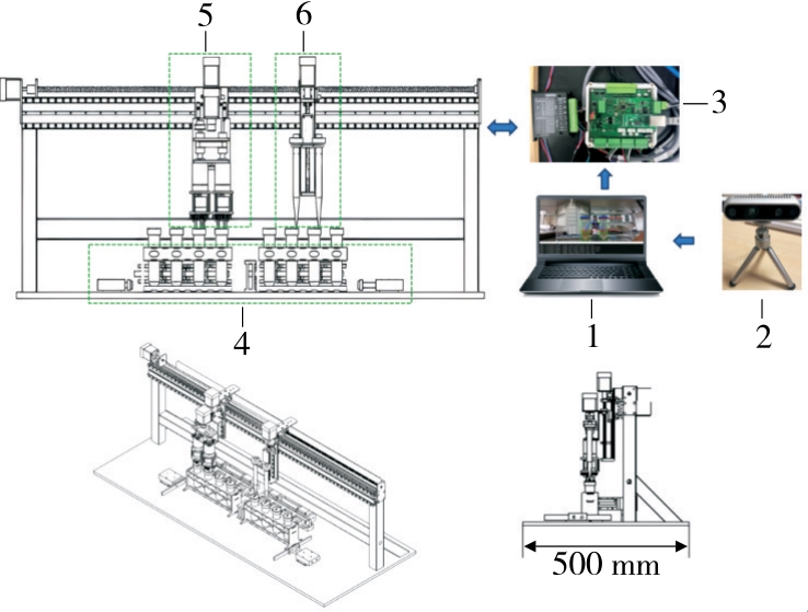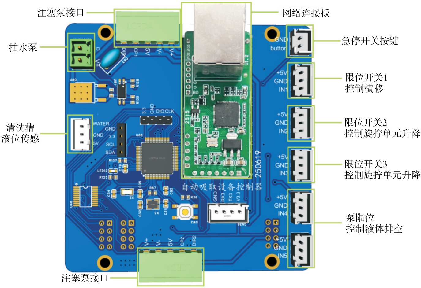 摘要:目的 针对现代食品检测实验室在样品前处理过程中精度差、受人为因素影响较大等问题,研制自动化移液装置,提升检测效率与质量,同时减少设备成本,降低维护复杂度,满足多种样本液在不同规格试管间的双通道移液需求。方法 采用电机驱动丝杆的传动结构,实现旋拧夹爪与移液头的横移、垂直移方向的准确运动。采用微升级精度的吸取泵对被测样本液进行精确吸取与释放。基于YOLOv8目标检测算法设计移液控制系统的上位机,实现移液区检测及液面初定位,并对移液装置的各执行单元实施调度。设计以STM32单片机为控制核心的下位机,通过网络模块与上位机连接通信,接收运动指令及上报各电机运行状态。结果 研制了一套基于视觉定位的自动化移液装置。结论 该装置能够按照设定的程序以较高精度完成移液任务,且试验结果满足JJG 646—2006标准要求,可满足食品检测中样品前处理过程所需移液需求。