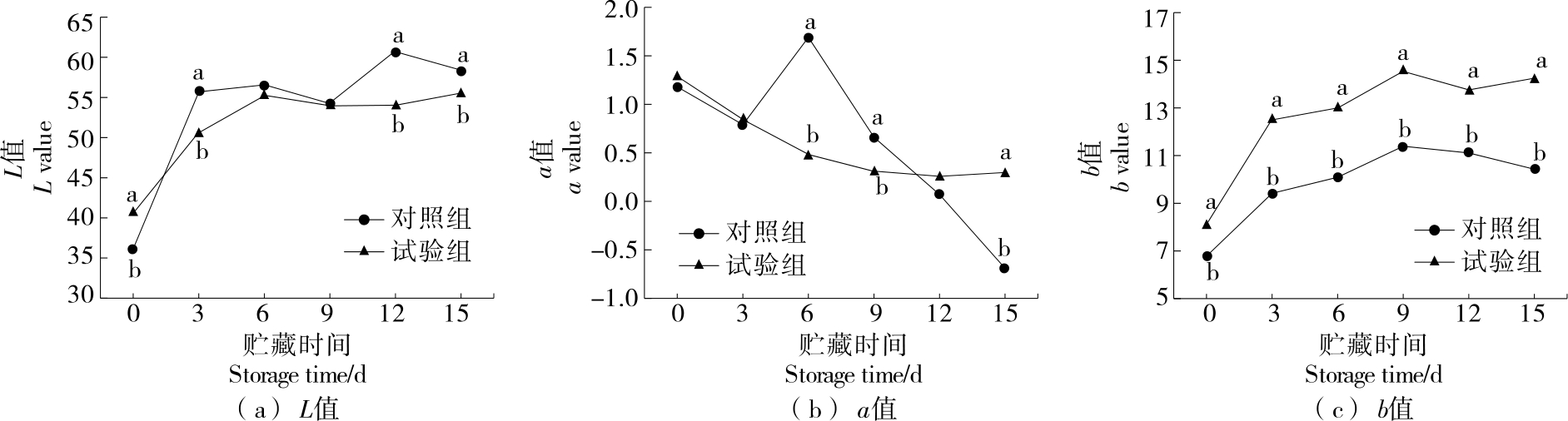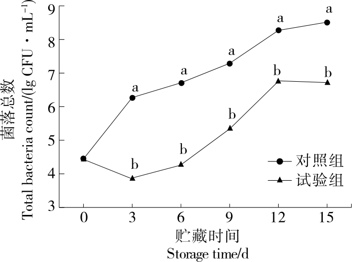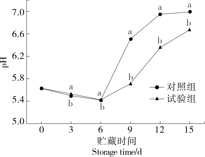 摘要:目的 研究姜精油纳米乳作为猪肉天然保鲜剂的保鲜效果。方法 采用质量分数1.5%的姜精油纳米乳处理猪里脊肉,分析4 ℃下猪里脊肉的感官、理化和微生物指标变化,并采用高通量测序技术,分析贮藏期间猪肉的菌群变化。结果 经姜精油纳米乳处理的猪肉的pH值、挥发性盐基氮和丙二醛含量在不同时间段均显著低于经无菌水处理的对照组(P<0.05),显示出良好的保鲜效果,里脊肉的货架期延长了6 d。姜精油纳米乳能有效降低微生物丰富度及多样性,并抑制巨大球菌属(Macrococcus)和热杀索丝菌属(Brochothrix)等腐败菌,延缓猪肉腐败。结论 姜精油纳米乳可作为天然保鲜剂有效抑制腐败菌生长,抑制猪肉蛋白质降解及脂质氧化,并改善感官品质,延长猪肉制品货架期。