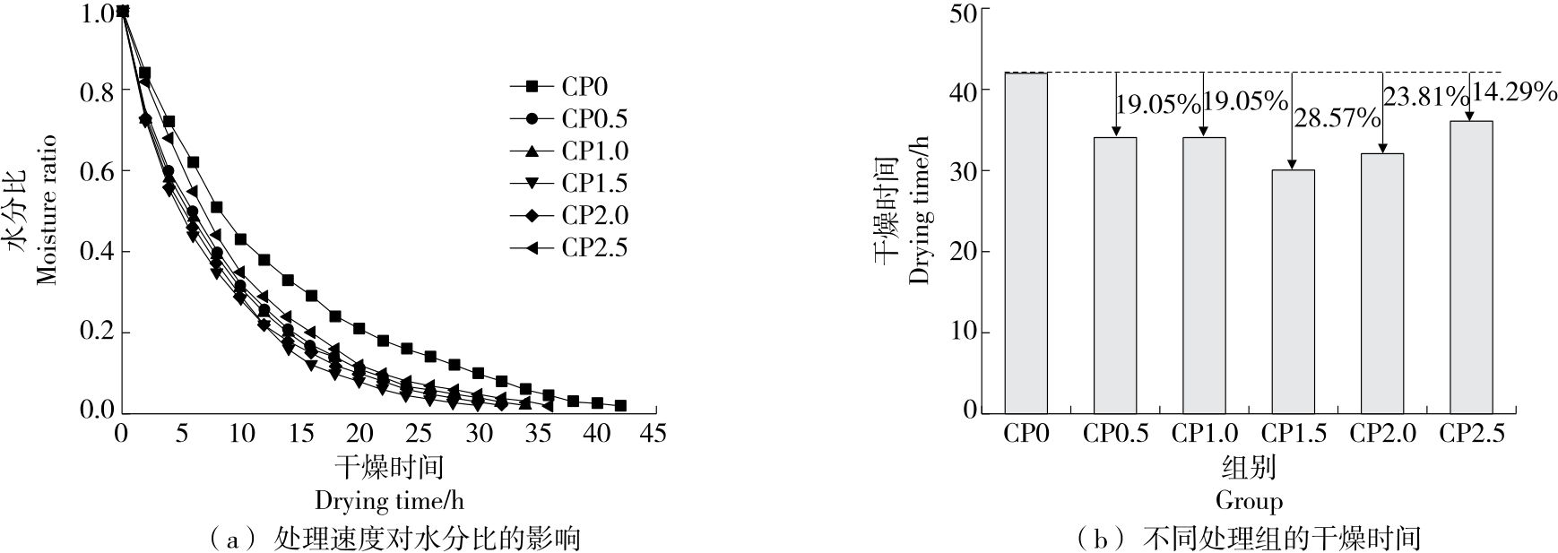 摘要:目的 探究冷等离子预处理条件对枸杞干燥特性及品质的影响,并确定最优工作参数。方法 以新鲜枸杞为原料,在不同输送速度(0.5,1.0,1.5,2.0,2.5 m/min)条件下进行冷等离子预处理,分析对比不同预处理对枸杞干燥时间、多糖、总黄酮、总酚、DPPH自由基清除能力、色泽以及复水比的影响。结果 采用冷等离子预处理能够提高枸杞干燥速度,缩短干燥时间,当冷等离子预处理输送速度为1.5 m/min,干燥后的枸杞多糖、总黄酮、总酚以及DPPH自由基清除能力值最高,分别为(103.18±0.84) mg/g、(5.35±0.04) mg/g、(10.46±0.07) mg GAE/g和(43.27±0.31)%,颜色与新鲜枸杞最接近,复水比也最高。结论 冷等离子预处理技术可以有效缩短干燥时间,提高枸杞干燥品质。