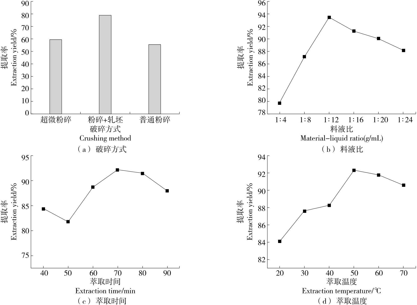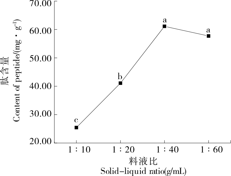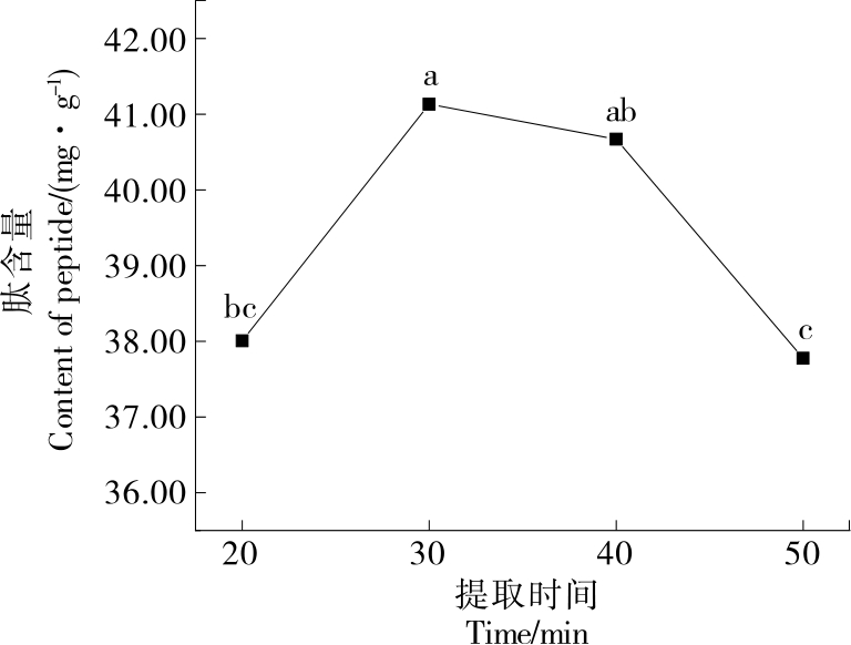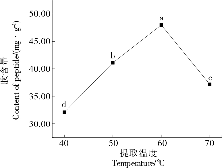摘要:目的 探究红菌豆腐中功能性肽的性能。方法 采用超声水提法提取红菌豆腐中的功能性肽,以肽的粗提物含量为指标,考察提取时间、pH、提取温度、料液比对肽提取的影响,设置单因素试验和正交试验对提取工艺进行优化,并评价所得功能性肽的抗氧化活性。结果 红菌豆腐中功能性肽的最佳提取工艺为提取时间35 min、提取温度55 ℃、pH 11、料液比1∶40 (g/mL),最佳工艺所得肽的粗提物含量为114.07 mg/g,远高于其他工艺条件所得。红菌豆腐中的功能性肽具有一定的抗氧化活性,以最佳工艺提取的功能性肽的DPPH自由基清除率和ABTS自由基清除率分别为69.46%和79.18%。结论 红菌豆腐是具抗氧化、营养和药用保健功能的食源性功能性肽的优良来源,极具开发利用价值。