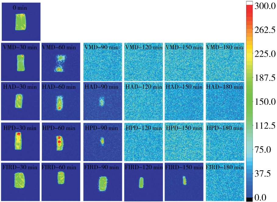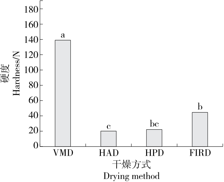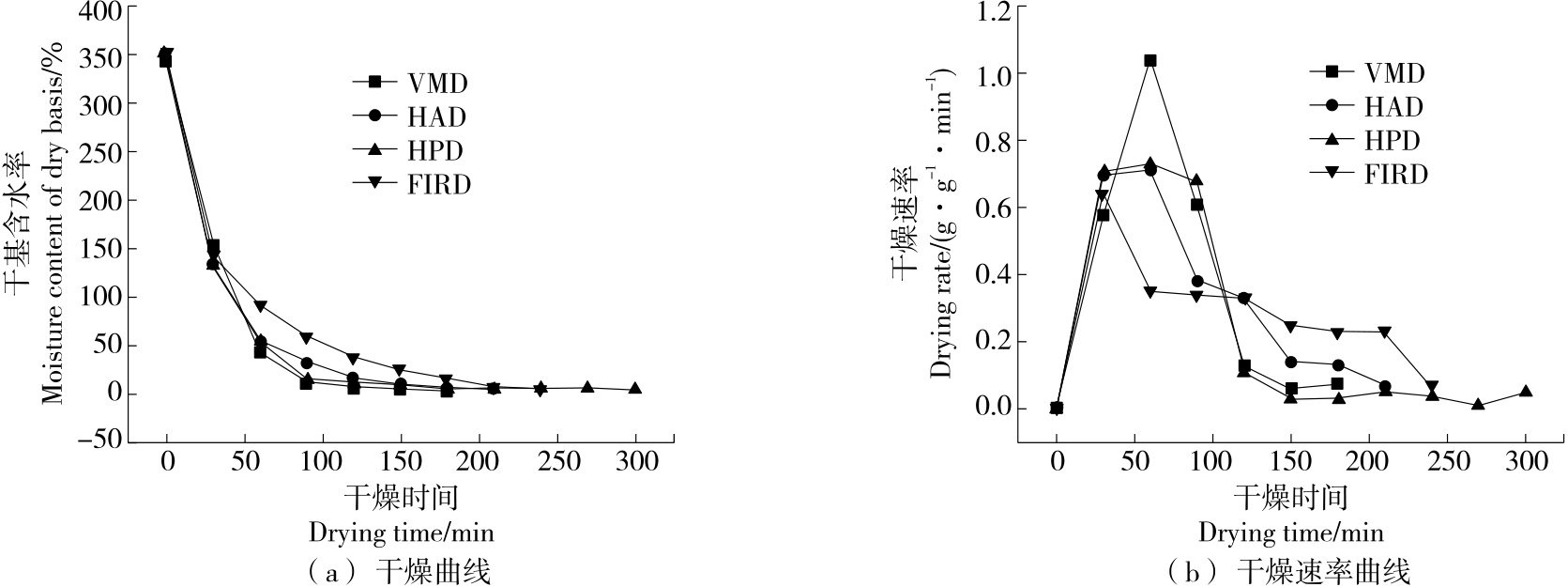 摘要:目的 减少采收香芋腐烂变质,提高香芋干燥品质。方法 分析了真空微波干燥(VMD)、热风干燥(HAD)、热泵干燥(HPD)、远红外辐射干燥(FIRD)4种干燥方式对香芋条干燥特性、物理特性(复水率、硬度、色差)、水分迁移和分布情况及微观结构的影响。结果 香芋干燥效率方面,VMD的自由水脱除时间最短,HAD和HPD的次之;色泽方面,L*值大小顺序为HAD>HPD>FIRD>VMD;硬度方面,VMD>FIRD>HPD>HAD;复水率方面,FIRD>HPD>HAD>VMD。微观结构显示,VMD和HAD香芋条表面收缩明显,结构更致密;FIRD和HPD香芋条表面结构较疏松,孔道较多。结论 HAD香芋条品质更佳。