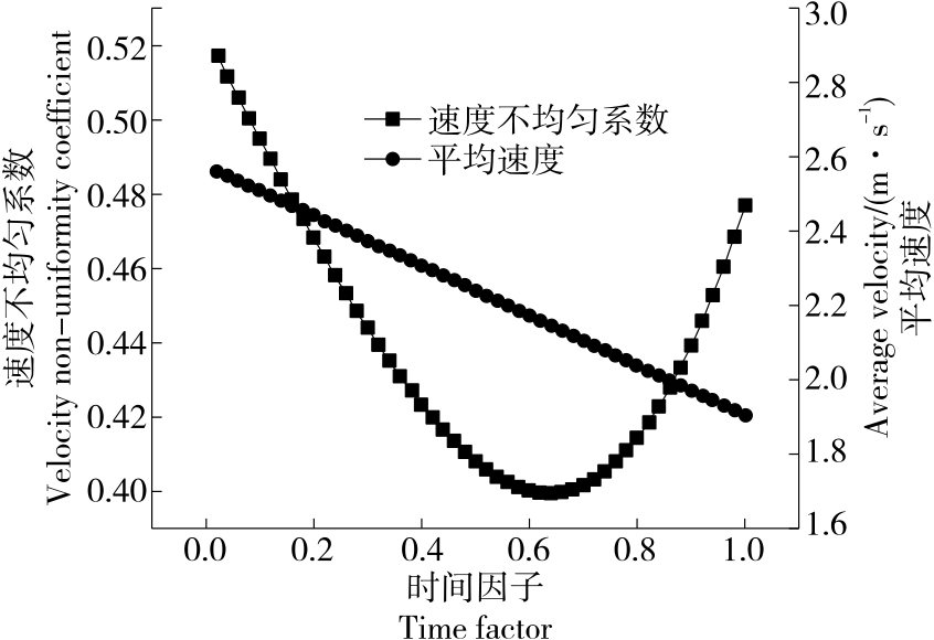 摘要:目的 提高冷风发酵房内气流的均匀性。方法 利用Fluent软件进行数值模拟,以平均速度和速度不均匀系数为评价指标,在供风量不变的条件下,探究进风管锥度对各送风口风量的影响规律;研究不同供风方式下发酵房横截面内气流速度的分布特点,并构建循环供风方式,分析一个周期内各供风方式的最佳时间占比。结果 随着进风管锥度的增大,始端送风口风量逐渐减小而末端逐渐增大,当锥度为7∶5时,进风管送风均匀性最好;相比于双侧供风,单侧供风平均速度大,有利于水分蒸发,但流场均匀性不好,降低了物料品质;在循环供风方式中,当双侧、左侧、右侧供风在1个周期内的工作时间占比分别为64%,18%,18%时,流场速度均匀性最好,相比于单一的双侧供风提高了16.4%,平均速度提高了13.2%。结论 通过对进风管锥度以及供风方式的改进,提高了冷风发酵房内气流的均匀性。