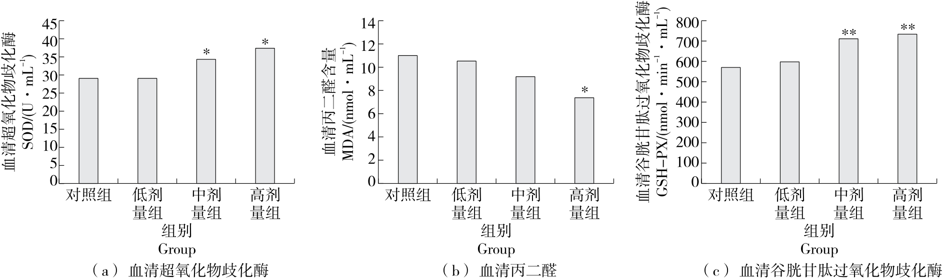 摘要:目的 考察裸藻提取物对小鼠抗疲劳作用及抗氧自由基水平的影响,并分析其具体作用机制。方法 选取40只健康成年雄性昆明小鼠,随机分为对照组(构建小鼠疲劳模型,并用生理盐水代替受试药物注射)、给药低剂量组(裸藻0.25 g/kg BW)、给药中剂量组(裸藻0.50 g/kg BW)和给药高剂量组(裸藻1.50 g/kg BW),灌胃给药,观察受试小鼠的游泳力竭时间和疲劳转棒试验时间,检测小鼠血糖、肝糖原、肌糖原、血尿素氮水平、全血乳酸含量、血清LDH和CK活性,并比较肝脏、腓肠肌与血清中超氧化物歧化酶和谷胱甘肽过氧化物歧化酶及丙二醛含量,综合评价裸藻的抗疲劳、抗氧自由基能力。结果 与对照组相比,裸藻提取物中剂量组和高剂量组的转棒时间显著延长(P<0.05)、小鼠负重游泳时间显著增加(P<0.05);小鼠肌组织中MG及肝脏中LG含量显著增加(P<0.05);小鼠血清中BUN含量显著降低(P<0.05);小鼠游泳后BLA浓度、血清LDH和CK活力显著降低(P<0.05);小鼠血清、肝脏和肌组织中SOD活力显著提高(P<0.05);小鼠血清、肝脏和肌组织中MDA含量显著降低(P<0.05);小鼠血清、肝脏和肌组织中GSH-Px活力显著提高(P<0.05)。结论 裸藻提取物具备有效清除运动过程中产生的超氧阴离子自由基和过氧化氢自由基的能力,可以缓解肌肉疲劳并减少运动性疲劳的发生。