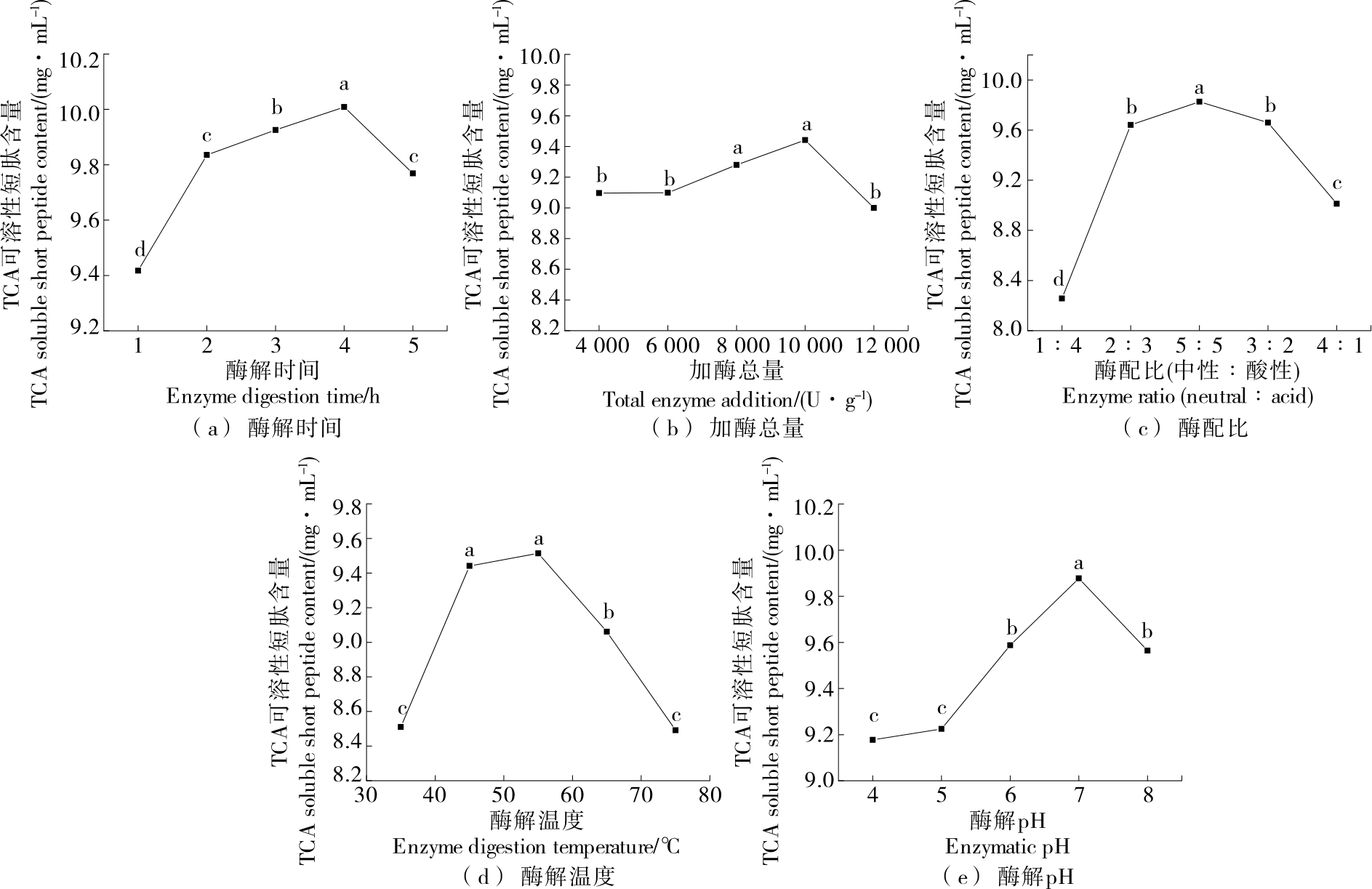 摘要:目的 为提高略阳乌鸡附加值,制备略阳乌鸡低聚肽,并测定其抗氧化活性。方法 以略阳乌鸡肉为原料,利用两种蛋白酶复合酶解,采用响应面法优化略阳乌鸡低聚肽制备工艺,并进行抗氧化活性评价。结果 略阳乌鸡低聚肽双酶复合酶解的最佳制备工艺为采用中性蛋白酶和酸性蛋白酶复合,底物质量浓度3 g/100 mL,酶解时间4 h,酶添加总量9 300 U/g,酶解pH 6.5,酶配比1∶1。该条件下,酶解产物中三氯乙酸(TCA)可溶性短肽含量最高,为10.29 mg/mL,与预测值接近,蛋白回收率为71.52%。略阳乌鸡低聚肽对DPPH自由基、ABTS+自由基、羟自由基的IC50分别为4.675 mg/mL、31.401 μg/mL、4.769 mg/mL,且10 mg/mL略阳乌鸡低聚肽的还原能力接近于0.02 mg/mL的抗坏血酸。结论 试验工艺可以获得较多具有抗氧化活性的略阳乌鸡低聚肽。